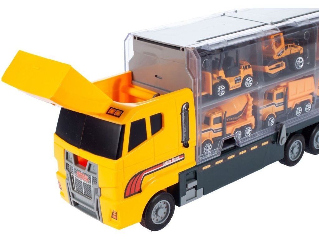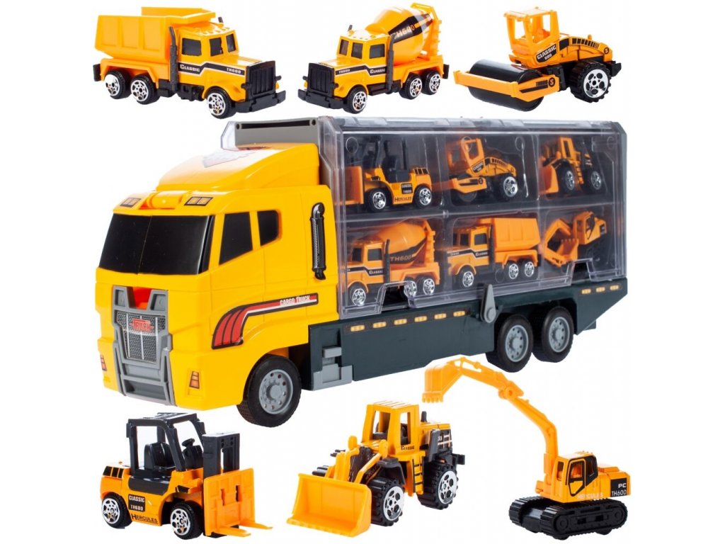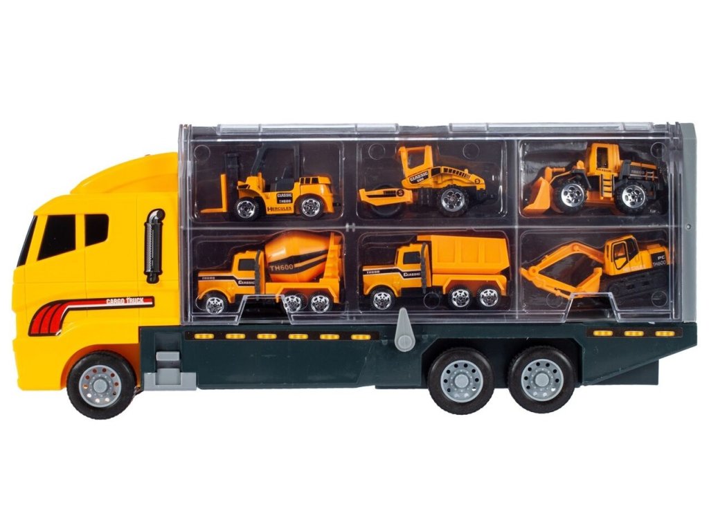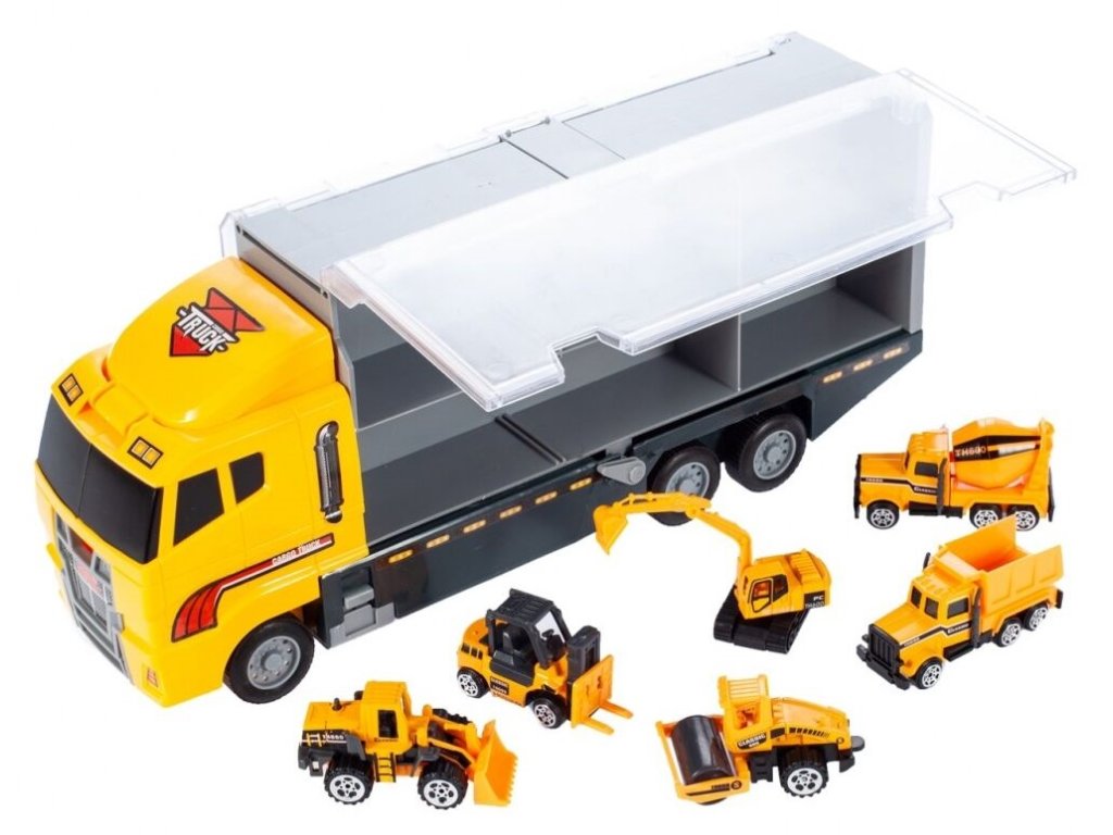 Nákladné autíčko je ideálnou hračkou pre každého motoristického nadšenca. Súčasťou auta je celkom 6 rôznych stavebných strojov a autíčok. Dieťa tu nájde nakladač, miešačku, nákladné auto, bager, vysokozdvižný vozík a valec. Obe bočné strany auta sú otváracie a sú rozdelené na priehradky. Otvárací je aj motor a strecha. Hračka je určená pre deti od 36 mesiacov .