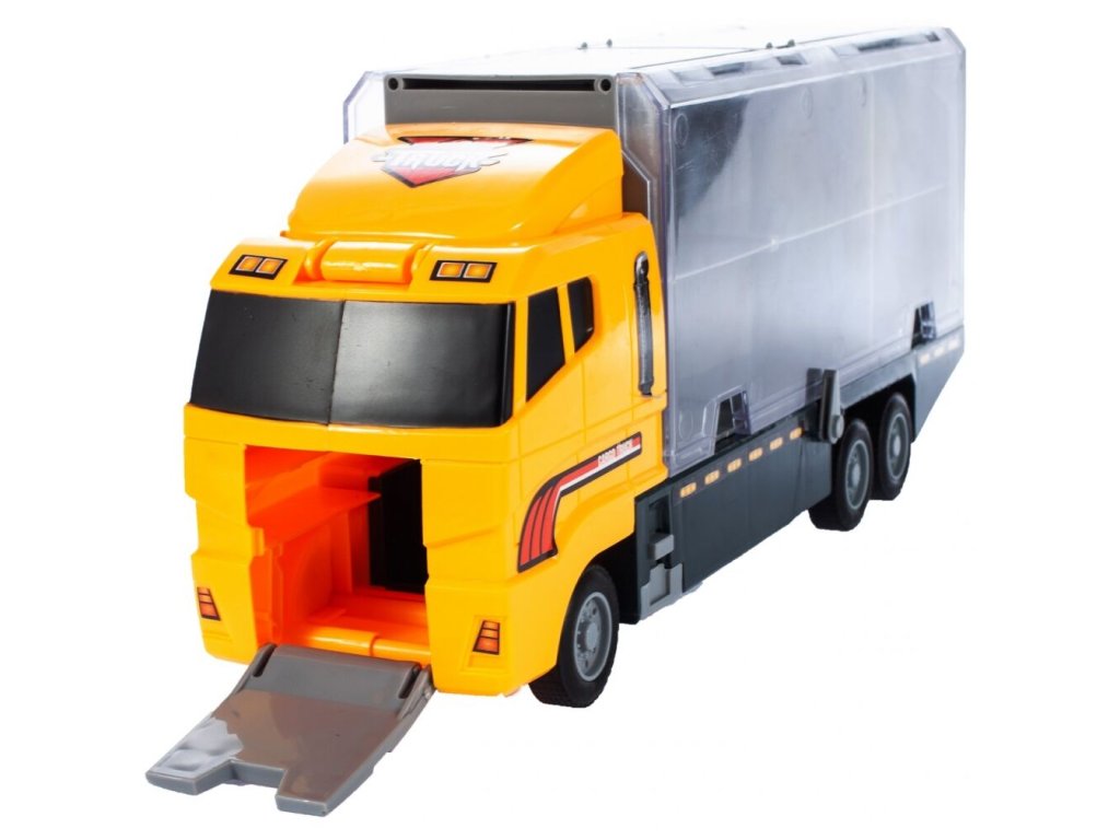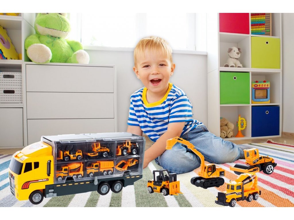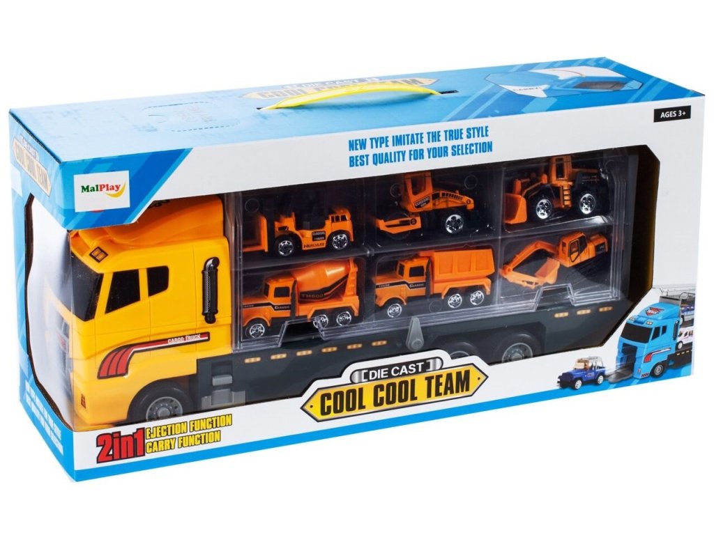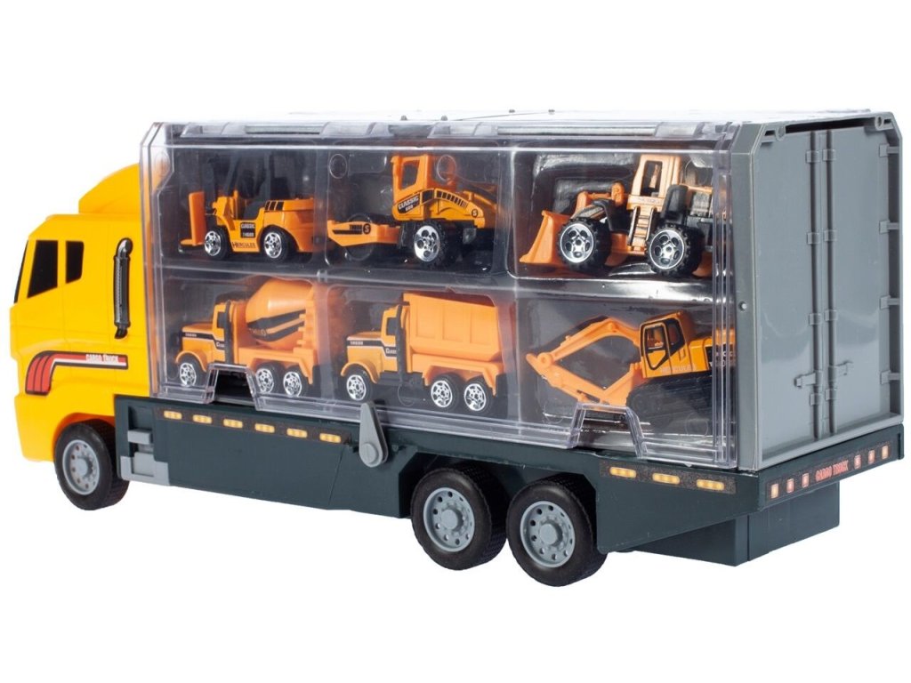 Nákladné autíčko je ideálnou hračkou pre každého motoristického nadšenca. Súčasťou auta je celkom 6 rôznych stavebných strojov a autíčok. Dieťa tu nájde nakladač, miešačku, nákladné auto, bager, vysokozdvižný vozík a valec. Obe bočné strany auta sú otváracie a sú rozdelené na priehradky. Otvárací je aj motor a strecha. Hračka je určená pre deti od 36 mesiacov .