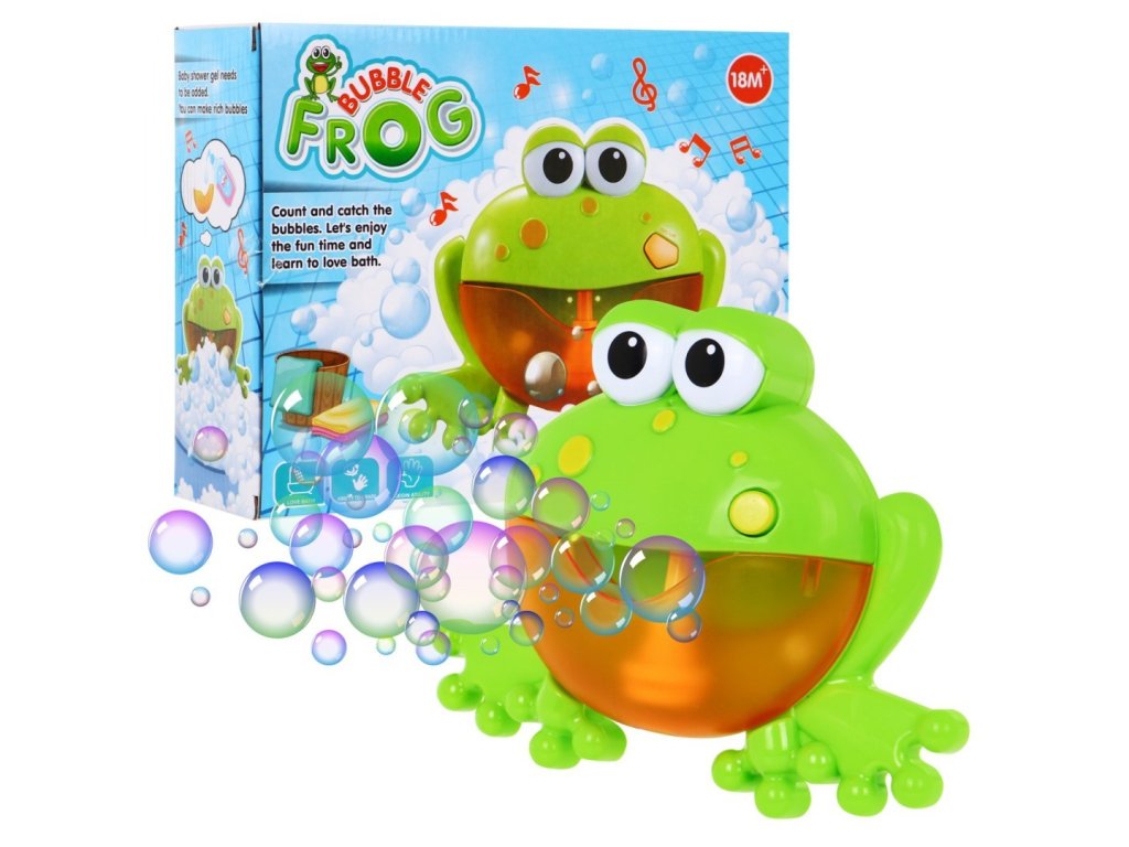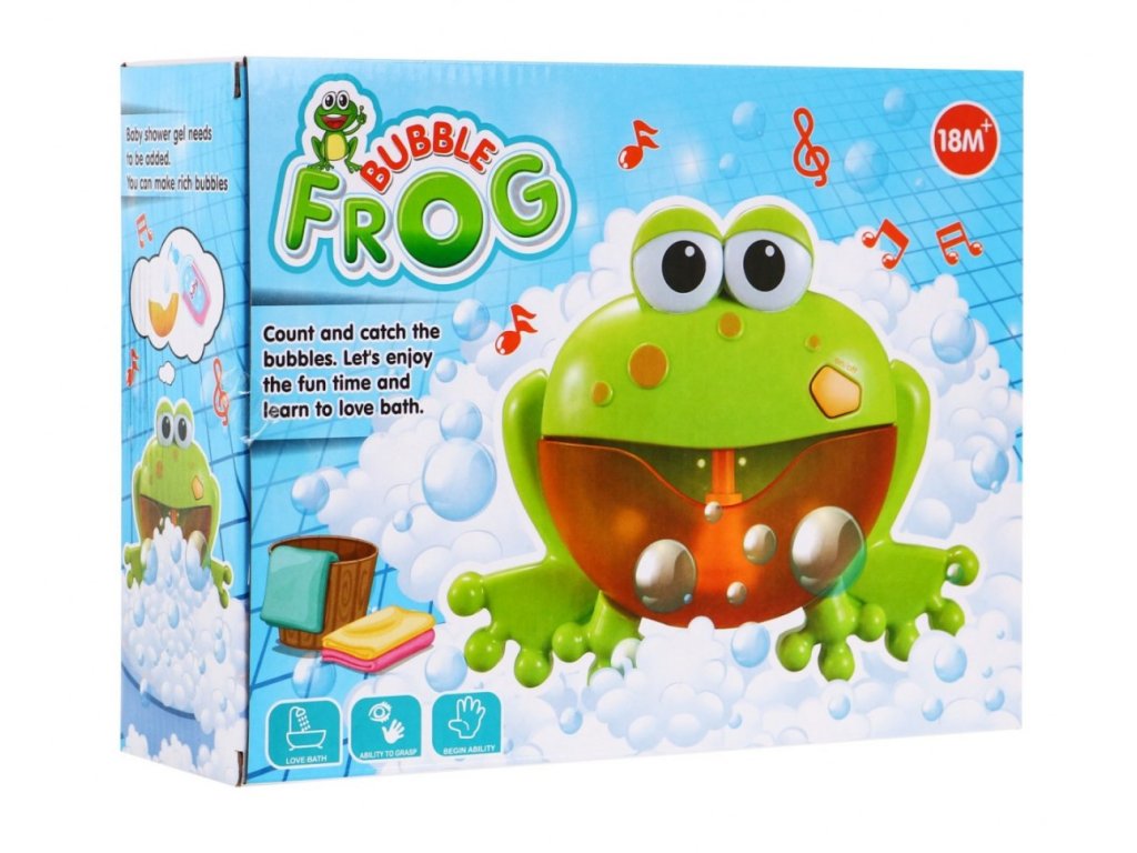 Detský bublinkovač do vane Bubble Frog vo tvare zelenej žabky dokáže vytvoriť nekonečné množstvo bublín. V zadnej časti sú umiestnené tri prísavky pre jednoduché uchytenie nad vaňu. Potom je treba dovnútra vliať vodu s mydlom, po skončení hry je potrebné prebytočnú tekutinu vyliať. Stlačením tlačidla sa spustí generátor bublín a melódie. Hračka je vyrobená z plastu a je určená pre deti od 18 mesiacov veku.