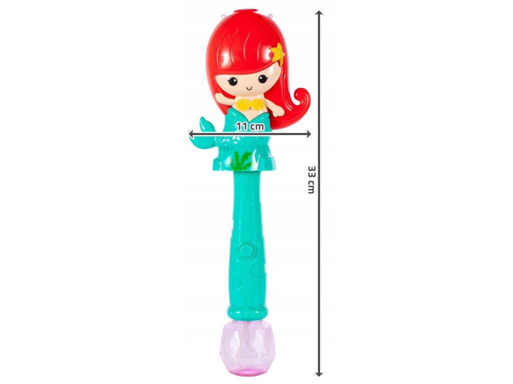 Detský bublifuk vo tvare kúzelnej paličky dokáže vytvoriť nekonečné množstvo bublín. Najskôr je treba naliať mydlový roztok do zásobníka v spodnej časti bublifuku. Stlačením tlačidla sa spúšťa generátor bublín spolu s melódiami a svetielkom. Po ukončení hry je potrebné zásobník vyliať a vytrieť ho suchou handričkou. Hračka je vyrobená z plastu a je určená pre deti od 36 mesiacov veku.