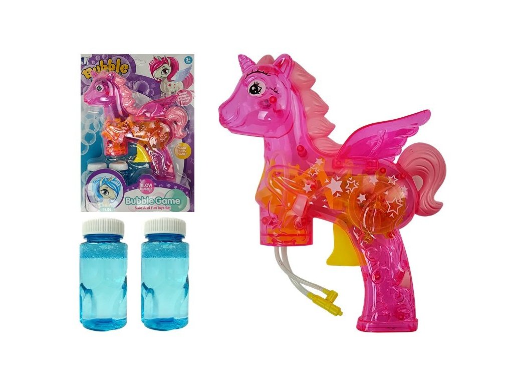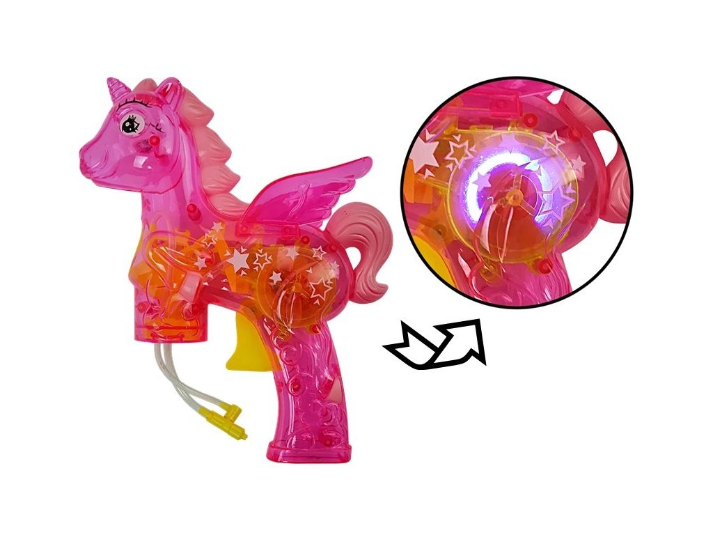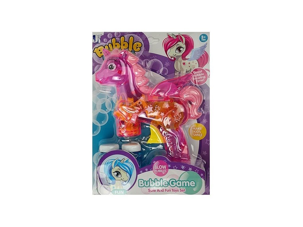 Detský bublifuk vo tvare jednorožca dokáže vytvoriť nekonečné množstvo bublín. Najskôr je potrebné nasadiť fľaštičku s mydlovým roztokom priamo do bublifuku. Stlačením spúšte sa spúšťa generátor bublín a zároveň sa spustí svetielko. Po ukončení hry je potrebné fľaštičku z bublifuku demontovať a utrieť ho suchou handričkou. Hračka je vyrobená z plastu a je určená pre deti od 36 mesiacov veku.