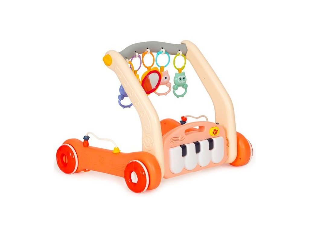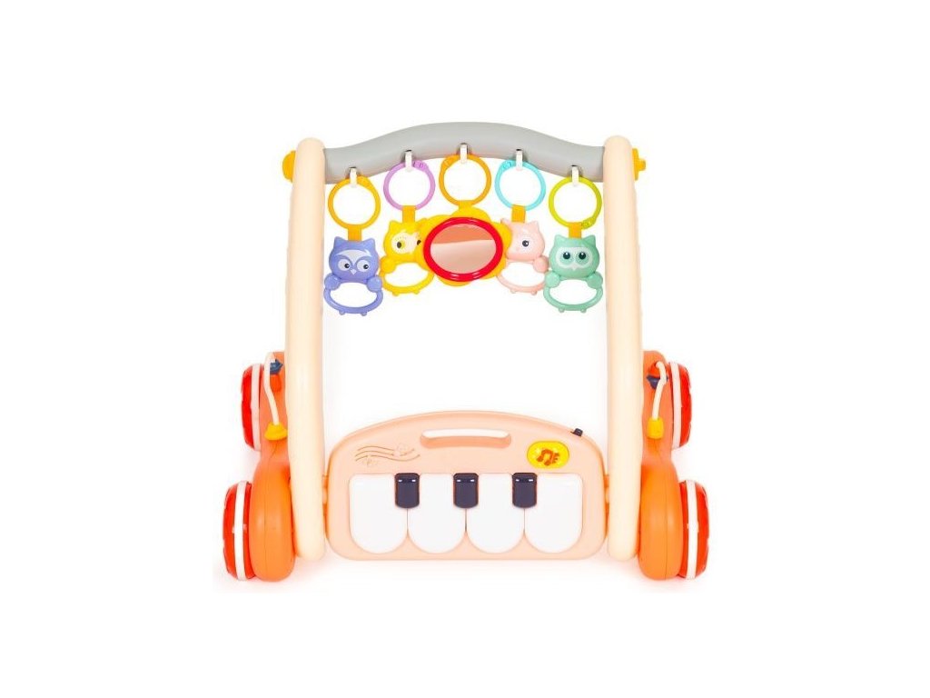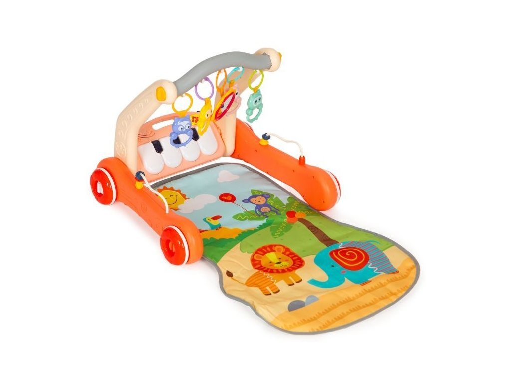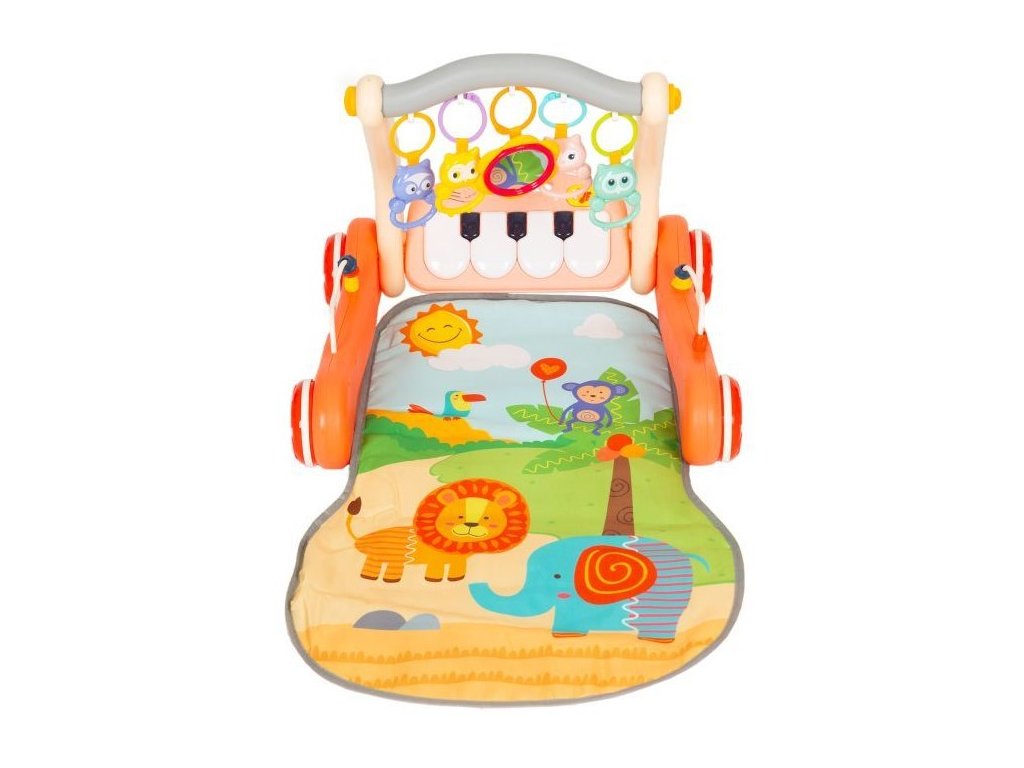 Chodítko s hracou dekou Haunger 2v1 Rack Walker je určené Vášmu dieťaťu už od narodenia. Súčasťou deky je hrazdička, ktorá slúži aj ako madlo chodítka so zavesenými hrkálkami a malinkým zrkadlom a tiež pianko, ktoré svieti a hrá melódie. Dieťa sa môže v ľahu hrať s hrkálkami a sledovať sa pri tom v zrkadle a pianko môže byť využité ako uspávacie melódie. Na bruchu sa dieťa naučí zdvíhať hlavičku a pozorovať veci okolo seba, pomôže mu k prvým krôčikom a zároveň oddeľuje dieťa od chladnej podlahy.
