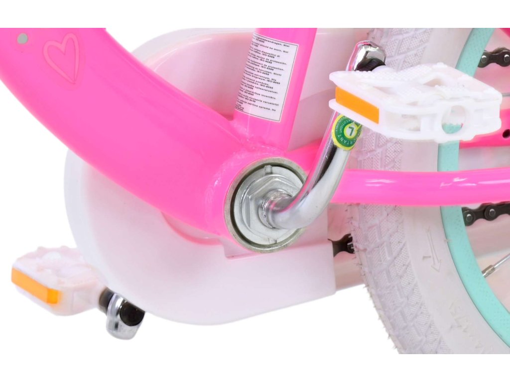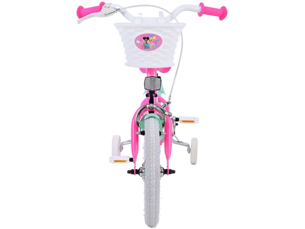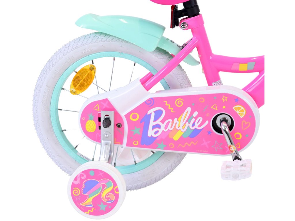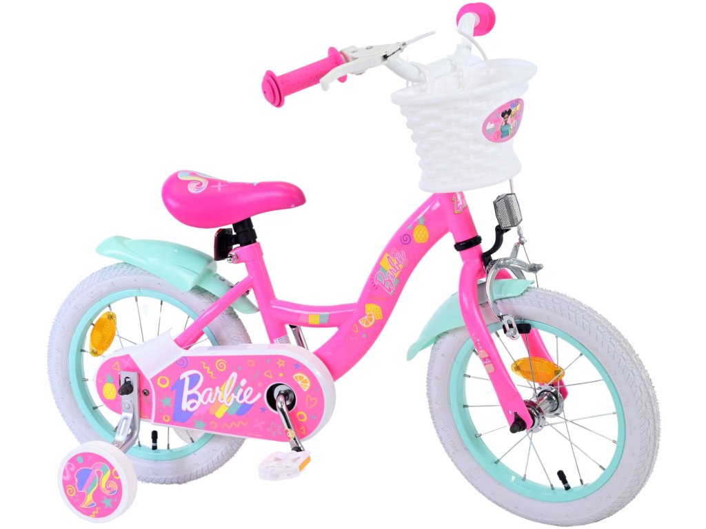 Originálny detský bicykel od holandského výrobcu Volare Barbie s veľkosťou ráfikov 14 palcov je určené pre deti vo veku od 3,5 do 5 rokov s výškou do 100 cm. Bicykel je vybavený demontovateľnými balančnými kolesami, dieťa sa teda bude cítiť hneď od prvej jazdy bezpečne a stabilne. Bicykel je vybavený 2 druhmi bŕzd. Brzdenie prebieha buď protismernou zadnou brzdou "torpédom", ktorá umožňuje brzdiť spätným záberom pedálov alebo možno použiť prednú pákovú brzdu. Proti nechcenému namotaniu nohavíc alebo šnúrky do reťaze má kolo kryt s farebnou potlačou, ktorý zakrýva celý reťaz. Sedadlo aj kormidlo sú výškovo nastaviteľné. Na riadidlách je umiestnený plastový košík.