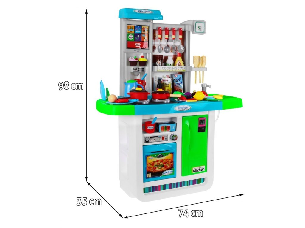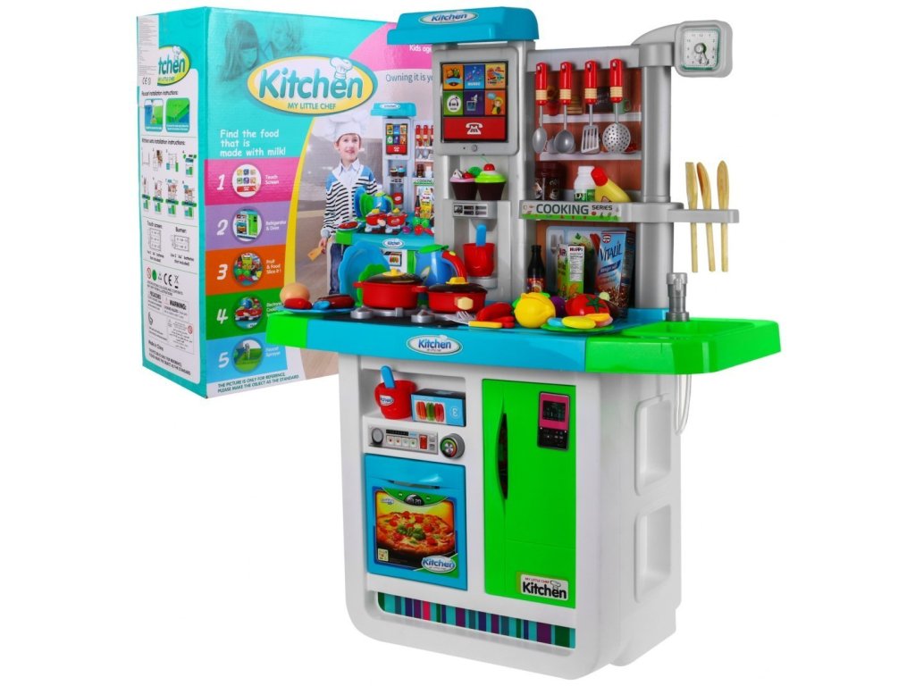 Detská kuchynka Delicious Kitchen s dotykovým panelom a tečúcou vodou je určená pre deti od 36 mesiacov veku. Je vybavená 2 podsvietenými horáky, ktoré vydávajú zvuky varenia a vyprážania. Kuchynka má veľké množstvo príslušenstva ako je hrniec s pokrievkou, panvicu s pokrievkou kuchynské náradie, príbory, imitácia potravín a zeleniny, hrnčeky, príbory a mnoho ďalších. Po napustení vody a stlačení tlačidla tečie z kohútika voda. Naviac má kuchynka dotykový panel s niekoľkými tlačidlami, ktoré stlačením vydávajú rôzne zvuky a melódie. Rúra a chladničky kuchynky sú otváracia. Je vyrobená z plastu v pestrofarebnom prevedení.