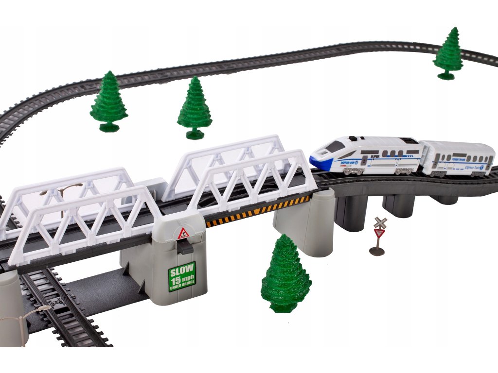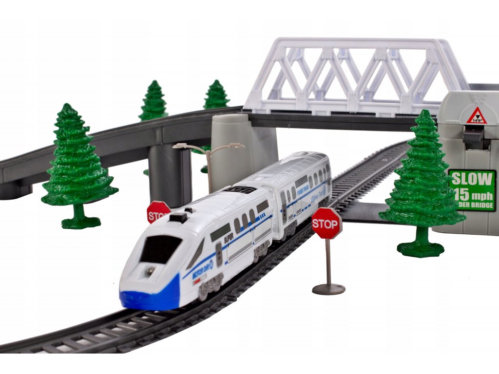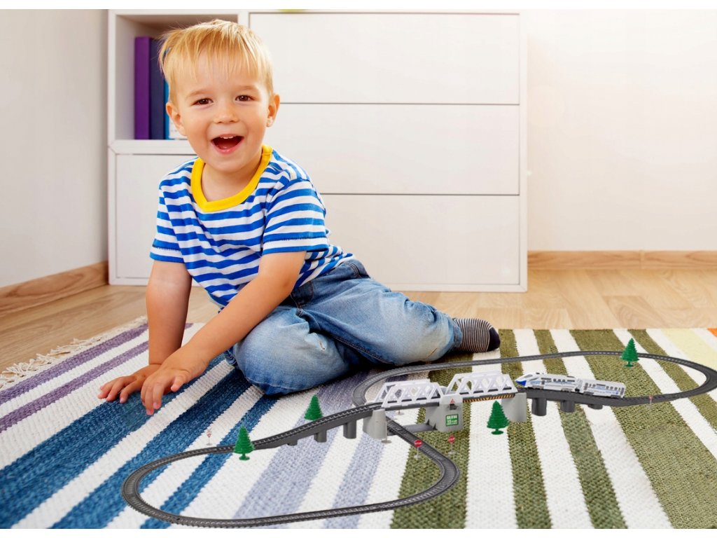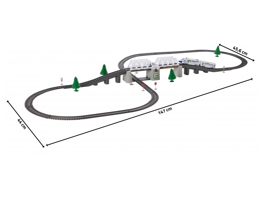 Vláčikodráha učí detí predstavivosť a podporuje kreativitu. Vláčkodráha je kompletne vybavená, nájdete tu modernú lokomotívu, 2 vagóny, dopravné značenie, stromčeky, koľaje, vyhýbky a tiež zdvíhací most, ktorý sa ovláda tlačidlom. Počas jazdy svieti v lokomotíve svetielko. Koľaje je možné rozložiť až do dĺžky 366 cm. Všetko je vyrobené z plastu bez ostrých hrán. Hračka je určená pre deti od 5 rokov veku.
