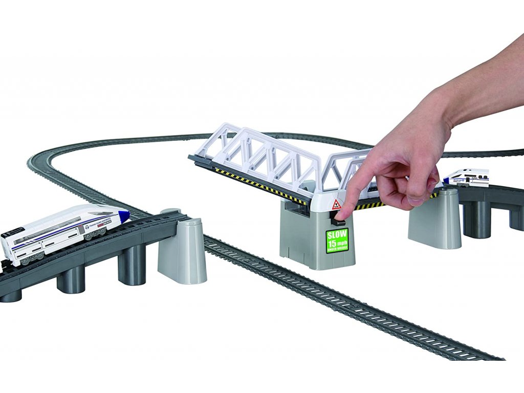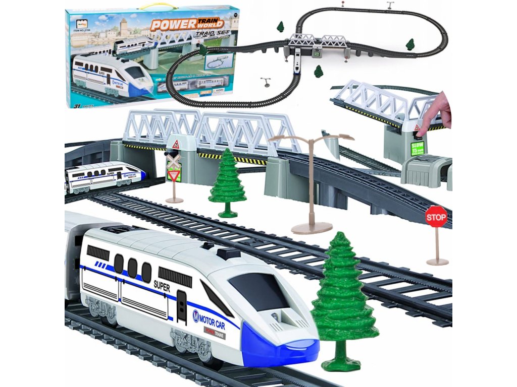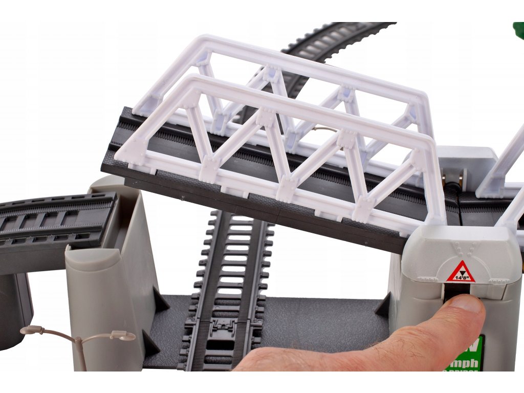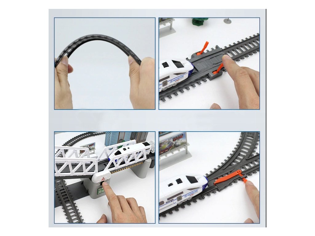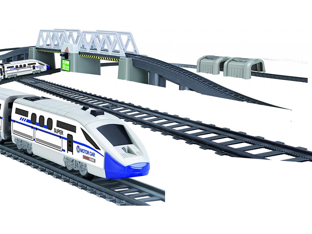 Vláčikodráha učí detí predstavivosť a podporuje kreativitu. Vláčkodráha je kompletne vybavená, nájdete tu modernú lokomotívu, 2 vagóny, dopravné značenie, stromčeky, koľaje, vyhýbky a tiež zdvíhací most, ktorý sa ovláda tlačidlom. Počas jazdy svieti v lokomotíve svetielko. Koľaje je možné rozložiť až do dĺžky 366 cm. Všetko je vyrobené z plastu bez ostrých hrán. Hračka je určená pre deti od 5 rokov veku.