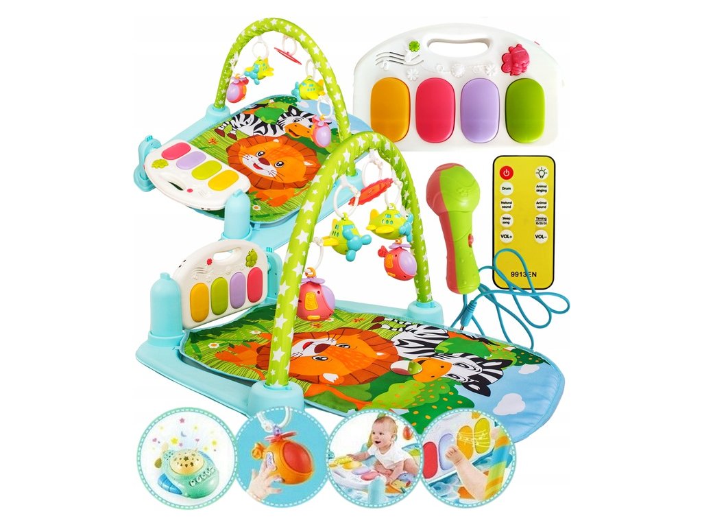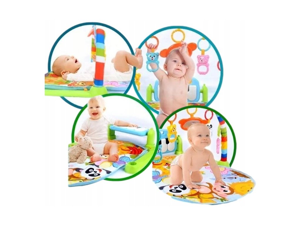 Farebná hracia deka Doris s diaľkovým ovládačom je určená Vášmu dieťaťu už od narodenia. Súčasťou deky je hrazdička so zavesenými hračkami a maličkým bezpečným zrkadlom a tiež klavír, ktorý svieti a hrá melódie. Ku klavíru sa dá pripojiť MP3 prehrávač alebo telefón a prehrávať tak vlastné skladby. Dieťa sa môže v ľahu hrať s hrkálkami a sledovať sa pri tom v zrkadle . Na bruchu sa dieťa naučí dvíhať hlavičku a pozorovať veci okolo seba, pomôže mu k prvým krôčikom a zároveň oddeľuje dieťa od chladnej podlahy (6-18 mesiacov). Ak už dieťa samostatne sedí môže hrať na klavíri alebo ho využiť ako interaktívny stolček. Zároveň sa tým prehlbuje motorika dieťaťa, rozvíja sa sluch a zrak (6-36 mesiacov).