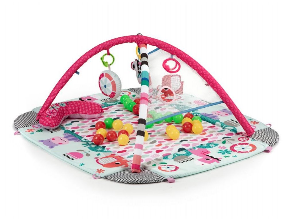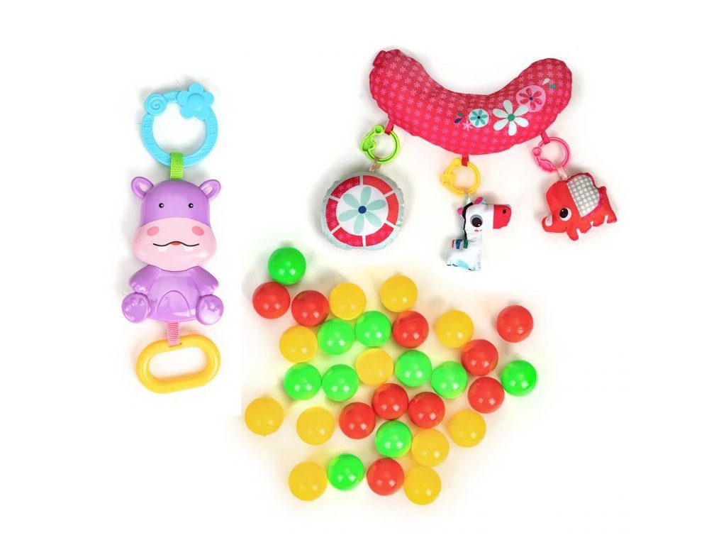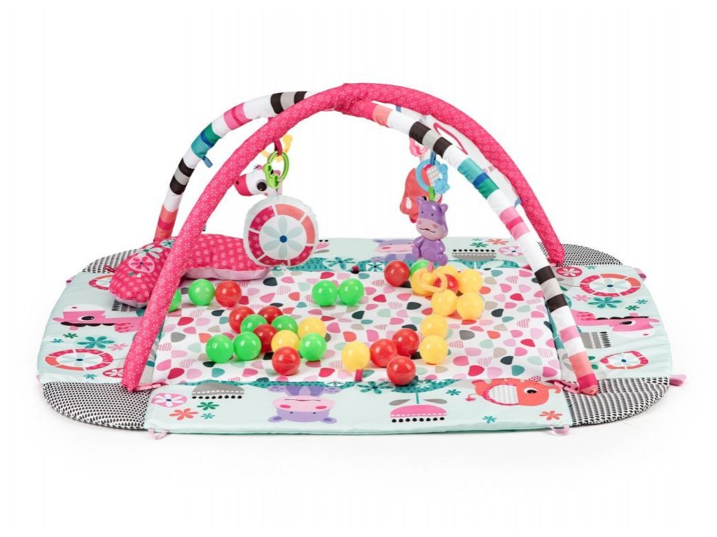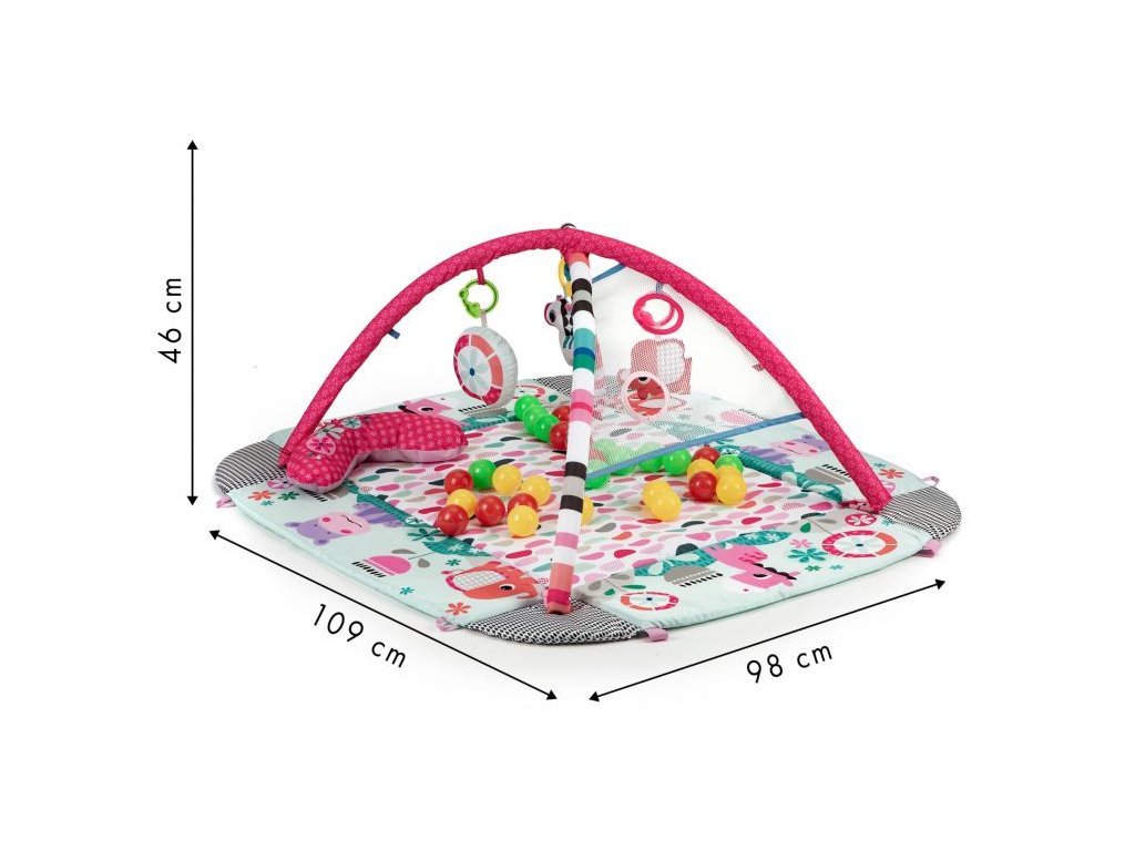 Ecotoys farebná hracia deka so 30 loptičkami je určená Vášmu dieťaťu už od narodenia. Súčasťou deky sú dve hrazdičky so zavesenými hračkami z ktorých je jedna v tvare tigra vydáva po stlačení veselé zvuky. Pomocou bočných stien deky možno vytvoriť ohrádku. Dieťa sa môže hrať niekoľkými spôsobmi podľa toho ako rýchlo rastie a má chuť sa hrať. V prvej fáze života sa dieťa hrá na chrbte a môže pozorovať zavesené hračky, ktoré vzbudzujú jeho zvedavosť. Pre dieťa, ktoré už zvládne väčšie pohyby možno stenu jednoducho zdvihnúť a vytvoriť tak bezpečnú ohrádku pre hranie. Možno využiť samostatnú deku, samostatnú ohrádku alebo skombinovať za pomoci hrazdičiek. Medzi nimi je umiestnená sieťka s otvormi pre vhadzovanie loptičiek. Hračky je možné odobrať a dieťa sa s nimi môže hrať samostatne. Deka je vyrobená zo stálofarebného materiálu.