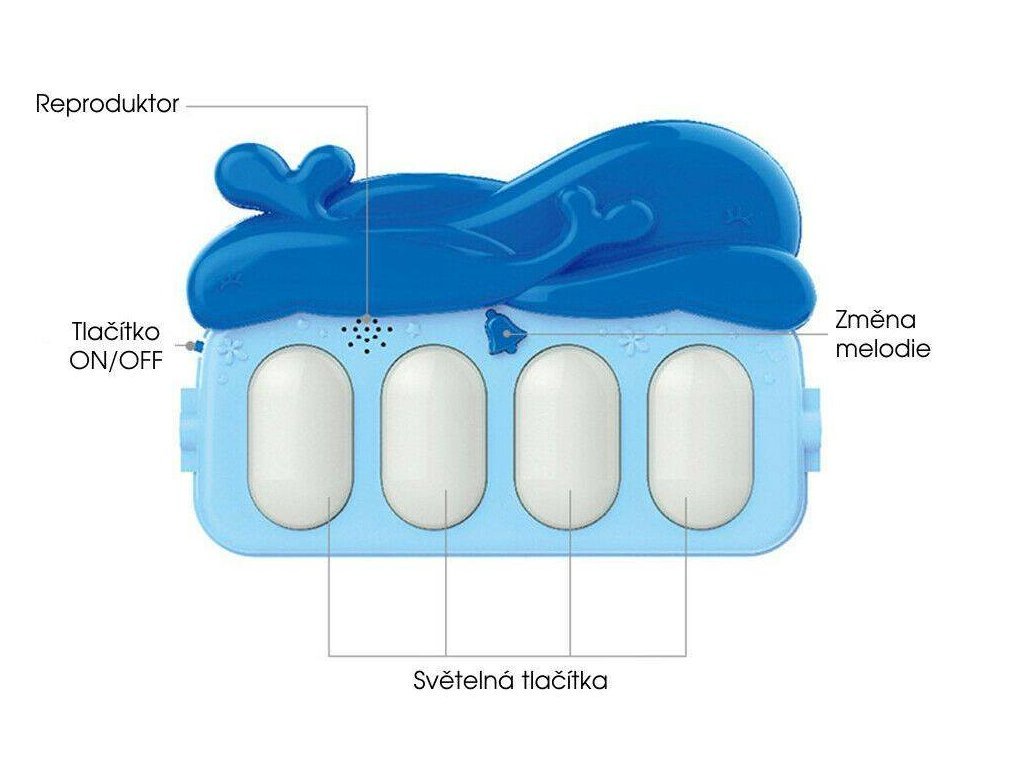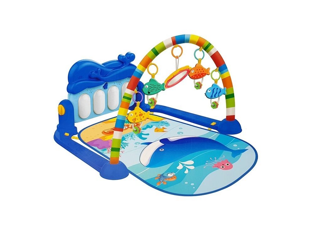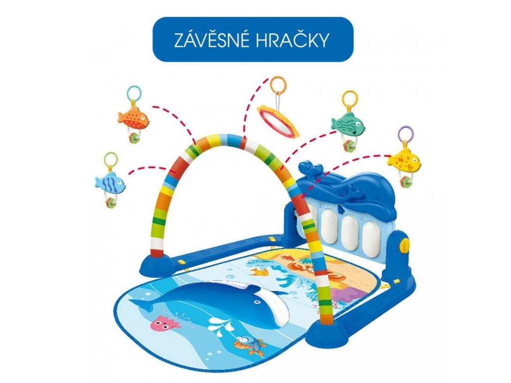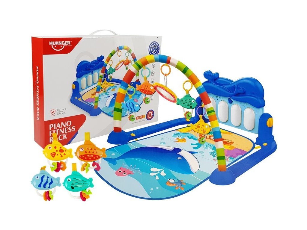 Farebná hracia deka Haunger 3v1 Delfínek je určená Vášmu dieťaťu už od narodenia. Súčasťou deky je hrazdička so zavesenými hrkálkami a maličkým zrkadlom a tiež piano, ktoré svieti a hrá melódie. Dieťa sa môže v ľahu hrať s hrkálkami a sledovať sa pri tom v zrkadle a piano môže byť využité ako uspávacia melódia (0-12 mesiacov). Na bruchu sa dieťa naučí dvíhať hlavičku a pozorovať veci okolo seba, pomôže mu k prvým krôčikom a zároveň chráni dieťa od chladnej podlahy (6-18 mesiacov). Ak už dieťa samostatne sedí môže hrať na piano alebo ho využiť ako interaktívny stolček. Zároveň sa tým prehlbuje motorika dieťaťa, rozvíja sa sluch a zrak (6-36 mesiacov).