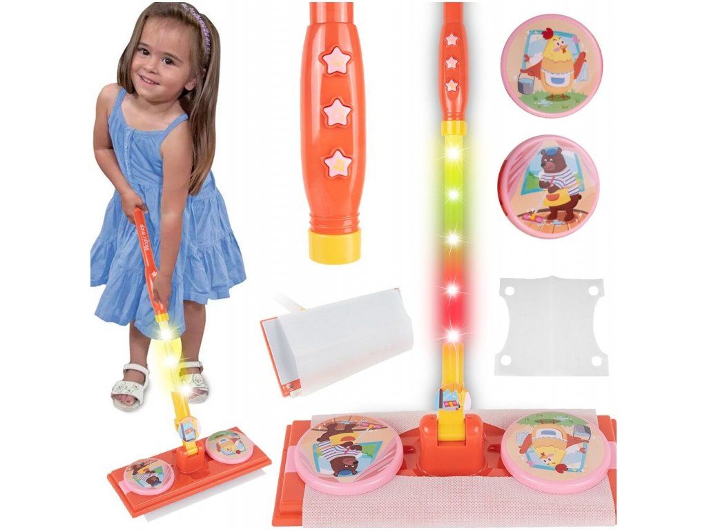 Detský mop na batérie Magic Mop premení Vaše dieťa na skutočnú pani domu. Je vybavený tromi zvukovými tlačidlami a farebnými svetelnými efektmi. Hračka je určená pre deti od 36 mesiacov.