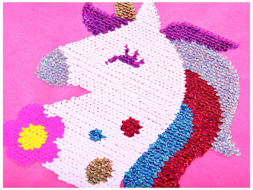 Súprava poteší každú malú krajčírku a umožní ju ušiť si vlastný vankúšik s jednorožcom. Očarujúca, ružová, mäkká látka s obrázkom jednorožca poteší každého fanúšika týchto kúzelných tvorov. Flitre sú navyše obojstranné, hladením jednorožca sa mení jeho farba. Súprava obsahuje prednú stranu vankúša s jednorožcom, zadnú stranu, výplň, šnúrku a bezpečnú ihlu. Určené pre deti od 5 rokov .