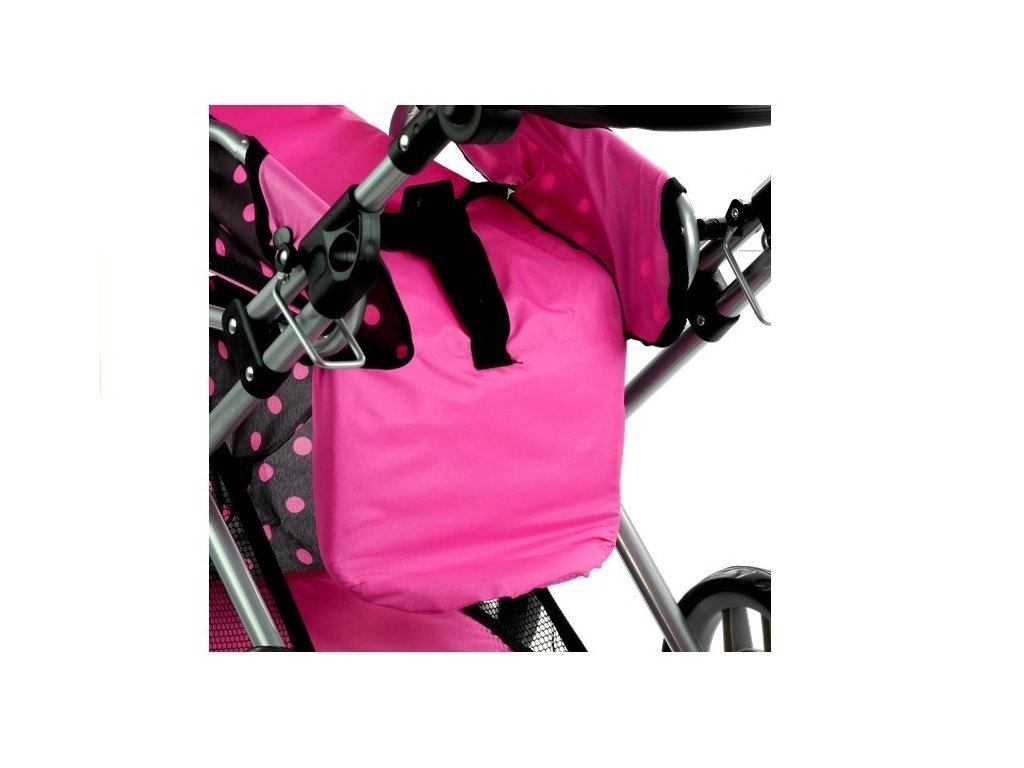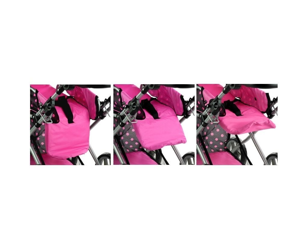 Kombinovaný kočík pre bábiky Alice má veľmi ľahkú stabilnú konštrukciu vyrobenú z hliníkových rúrok, vrchná časť je z impregnovanej bavlny. Možno ju jednoducho odňať a kedykoľvek vyprať. Rukoväť kočíka je nastaviteľná a obalená penou. Vo vnútri kočíka je nosítko s úchytkami a obliečkami slúžiace na prenášanie bábiky. Pred automatickým zložením chráni dieťa blokácia. Bábika je proti vypadnutiu zabezpečená bezpečnostným pásom. Penové kolesá s diskami nezanechávajú šmuhy na podlahe. Kočík je určený pre dievčatká od 3 rokov.