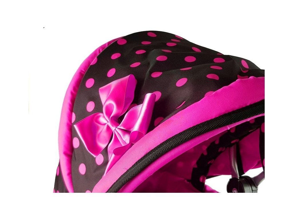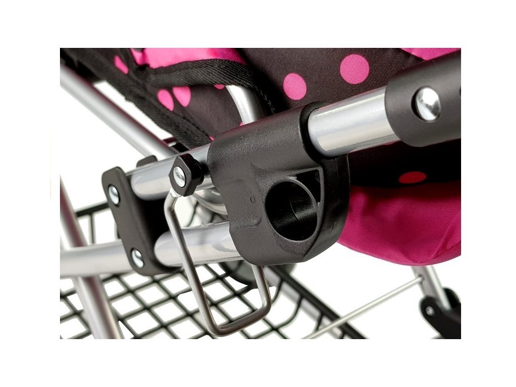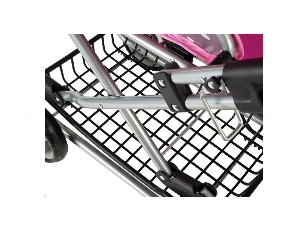 Kombinovaný kočík pre bábiky Alice 9346W má veľmi ľahkú stabilnú konštrukciu vyrobenú z hliníkových rúrok, vrchná časť je z impregnovanej bavlny. Možno ju jednoducho odňať a kedykoľvek vyprať. Rukoväť kočíka je nastaviteľná a obalená penou. Vo vnútri kočíka je nosítko s úchytkami a obliečkami slúžiace na prenášanie bábiky. Pred automatickým zložením chráni dieťa blokácia. Bábika je proti vypadnutiu zabezpečená bezpečnostným pásom. Penové kolesá s diskami nezanechávajú šmuhy na podlahe.