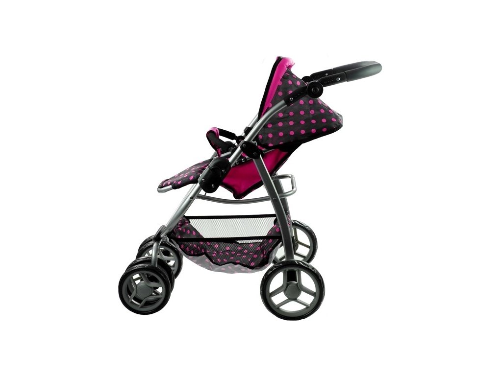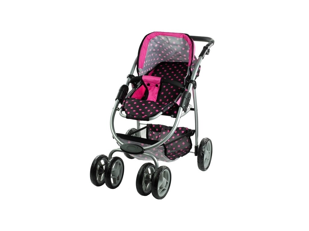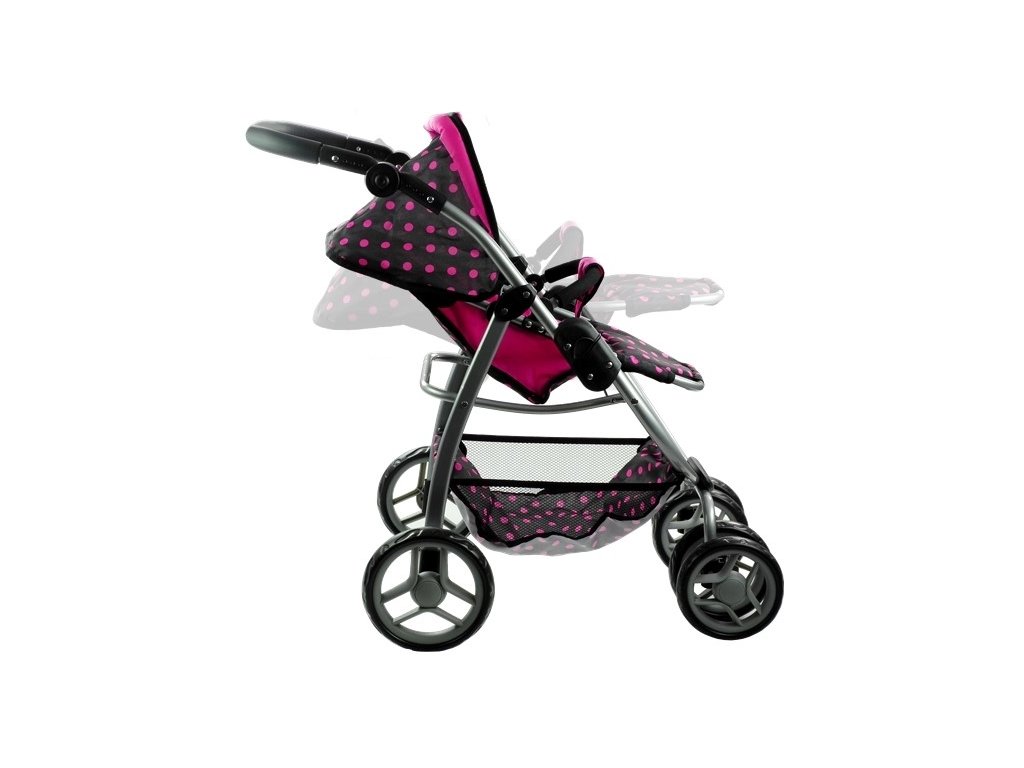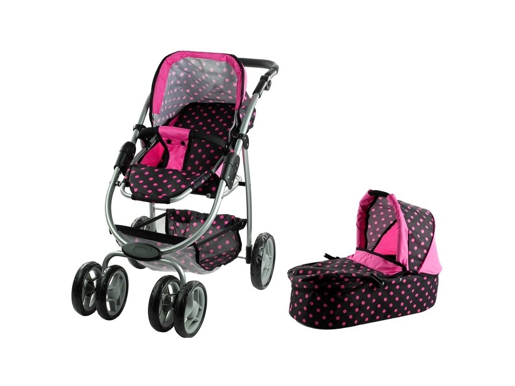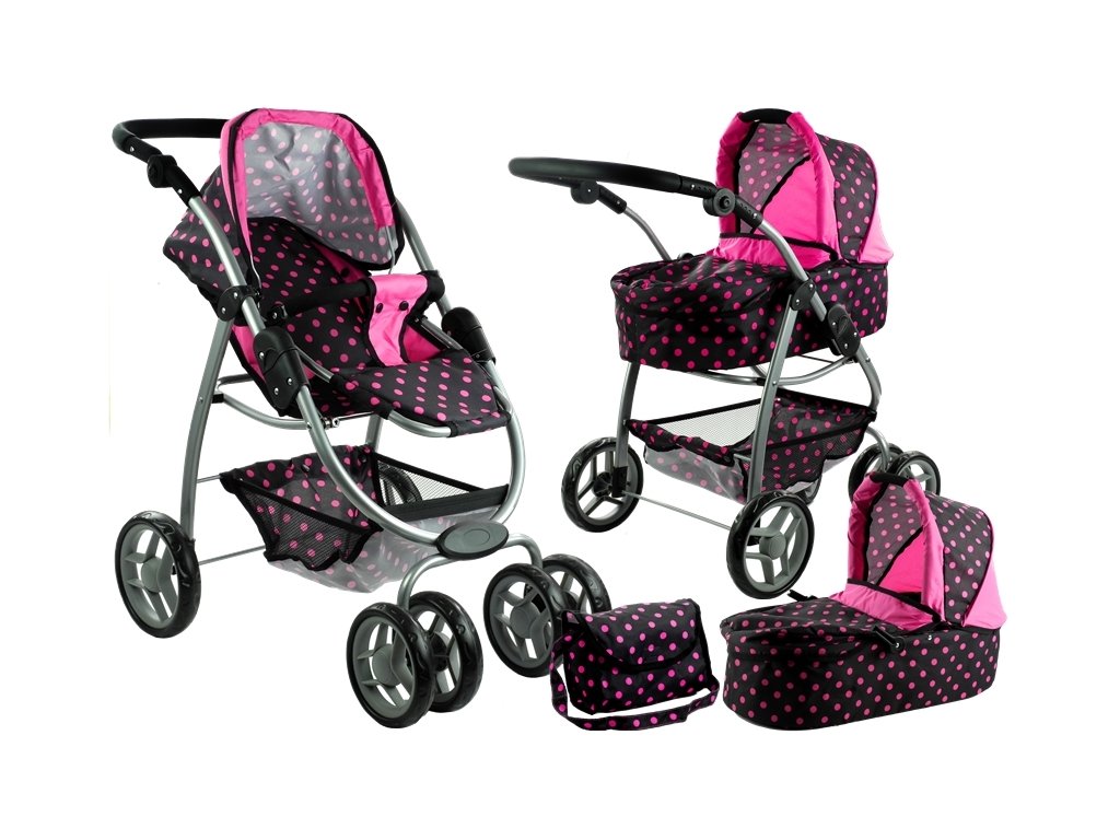 Kombinovaný kočík pre bábiky Alice 3v1 v niekoľkých nádherných farebných prevedeniach. Má veľmi ľahkú stabilnú konštrukciu vyrobenú z hliníkových rúrok, vrchná časť je z impregnovanej bavlny. Možno ju jednoducho odňať a kedykoľvek vyprať. Rukoväť kočíka je nastaviteľná a obalená penou. Vo vnútri kočíka je vanička slúžiaca k jednoduchému prenášaniu bábiky. Pred automatickým zložením chráni dieťa blokácia. Bábika je v športovej verzii proti vypadnutiu zabezpečená bezpečnostným pásom. Jednoduchá zmena z hlbokej na športovú verziu.