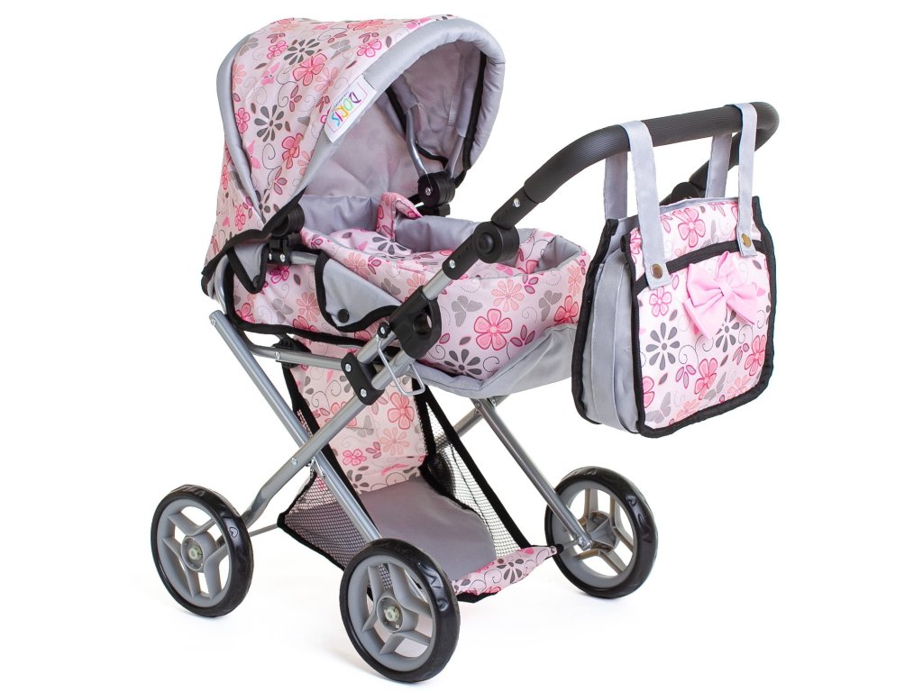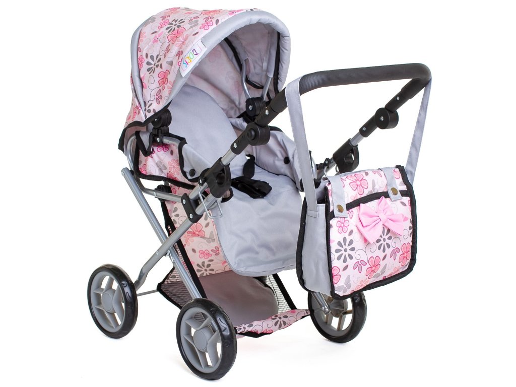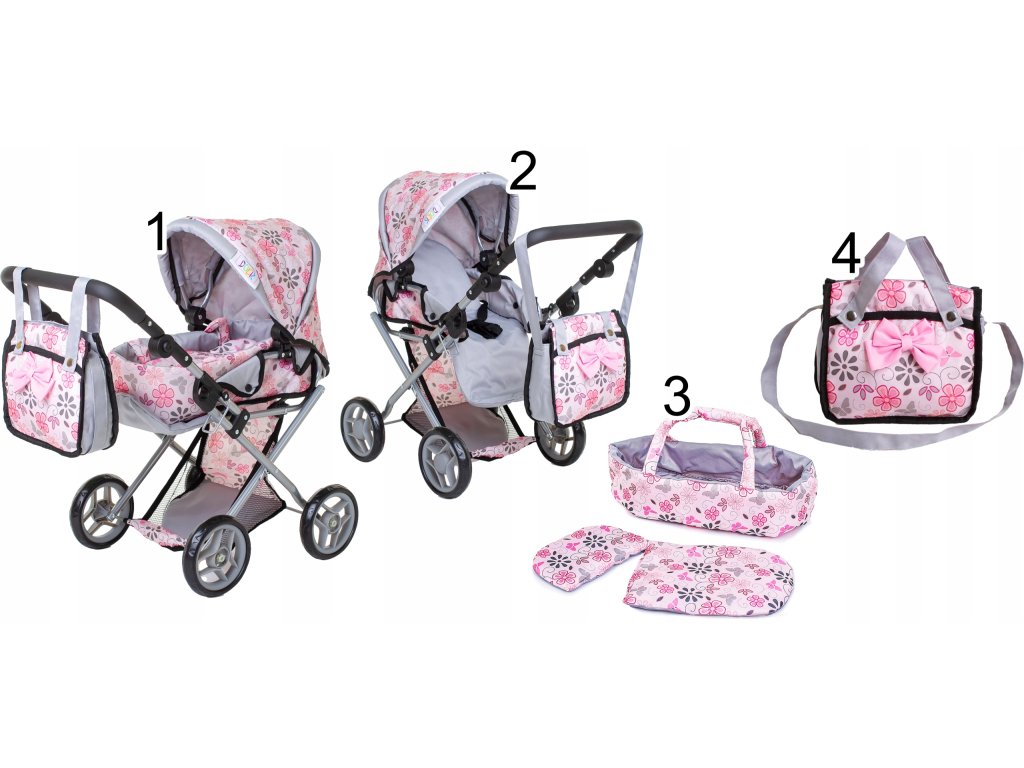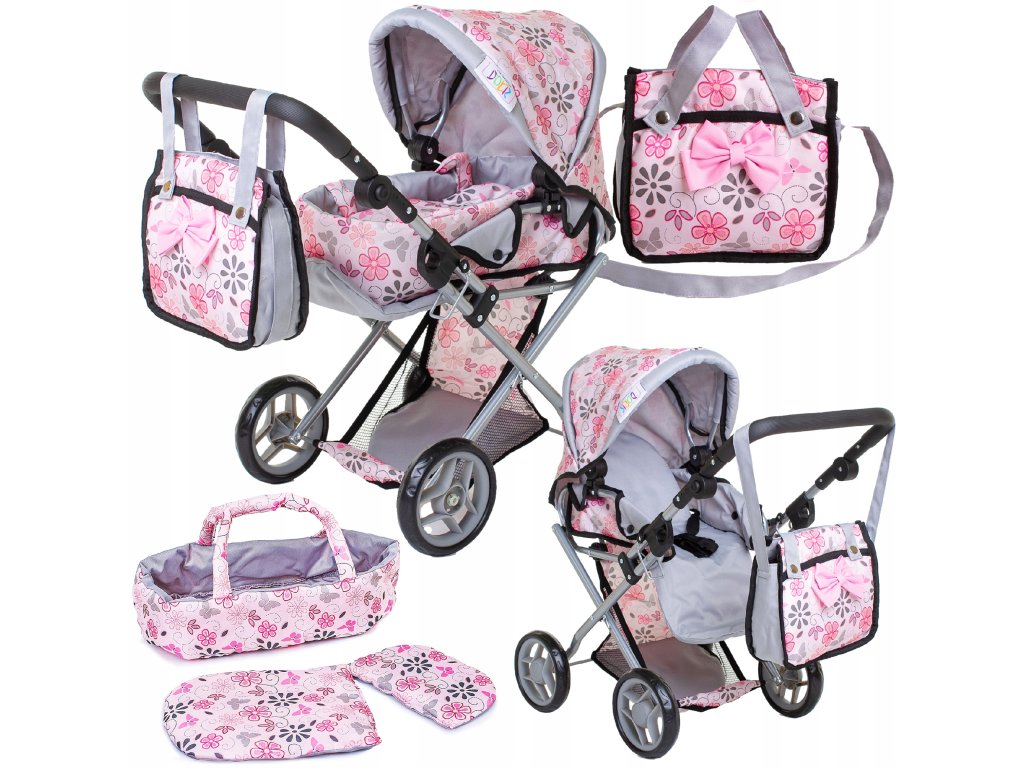 Kombinovaný kočík Doris 9346 pre bábiky v niekoľkých nádherných farebných prevedeniach. Má veľmi ľahkú stabilnú konštrukciu vyrobenú z hliníkových rúrok, vrchná časť je z impregnovanej bavlny. Možno ju jednoducho odňať a kedykoľvek vyprať. Rukoväť kočíka je nastaviteľná a obalená penou. Vo vnútri kočíka je nosítko s úchytkami slúžiace na prenášanie bábiky. Pred automatickým zložením chráni dieťa blokácia. Bábika je proti vypadnutiu zabezpečená bezpečnostným pásom. Penové kolesá s diskami nezanechávajú šmuhy na podlahe.