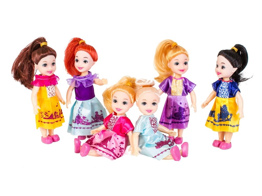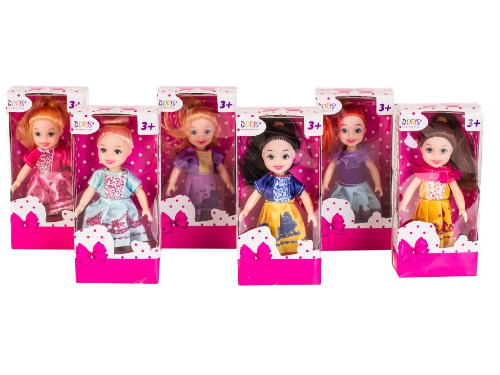 Doris sada 6 bábik Happy Dolls urobí ohromnú radosť každemu dievčatku. Každá bábika má dlhé vlásky, oblečenie a odnímateľné topánočky. Nohy a ruky každej bábiky sú pohyblivé. Výška bábiky je 12 cm. Hračka je určená pre deti od 36 mesiacov veku.