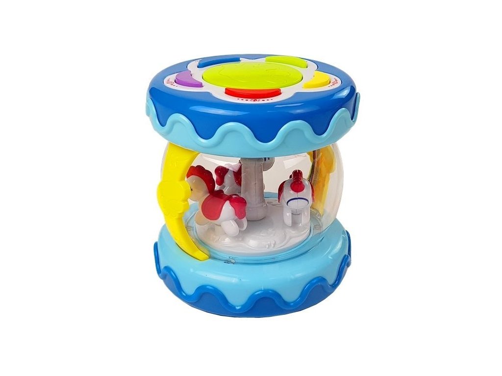 Haunger interaktívny hrajúci bubienok Music Drum je určený pre tie najmenšie deti. Uprostred bubienka je umiestnené veľké tlačidlo, po jeho stranách potom Nekola malých tlačidiel so symbolmi. Tie po stlačení vydávajú veselé melódie a zvuky zvierat. V spodnej časti bubienka je umiestnený kolotoč s poníkmi, ktorý ľahko upúta pozornosť dieťaťa. Bubienok má svetelné efekty a je vybavený reguláciou hlasitosti. Bubienok je ideálnou hračkou pre rozvoj detskej motoriky, hmatu, zraku, logického myslenia a rozpoznávanie zvukov. Hračka je určená pre deti od 18 mesiacov veku.