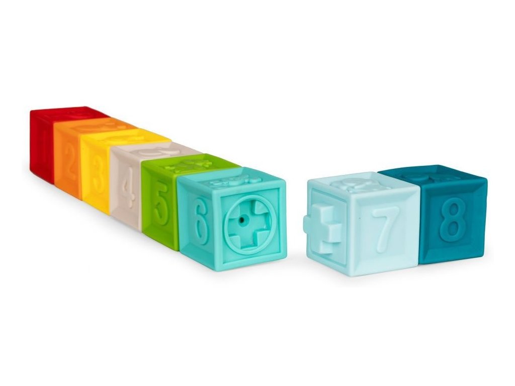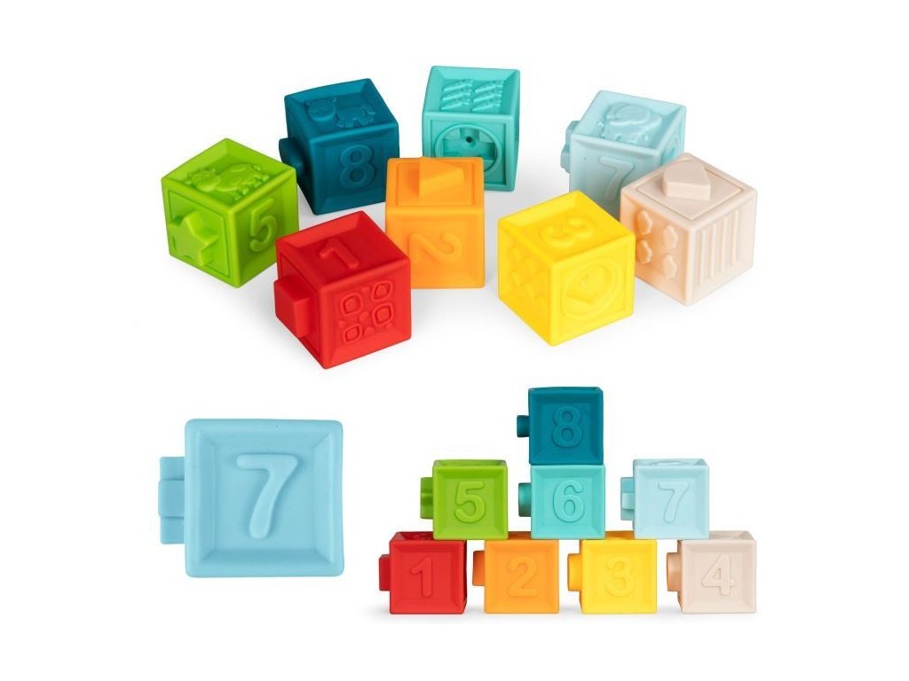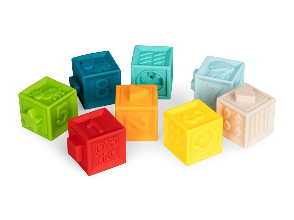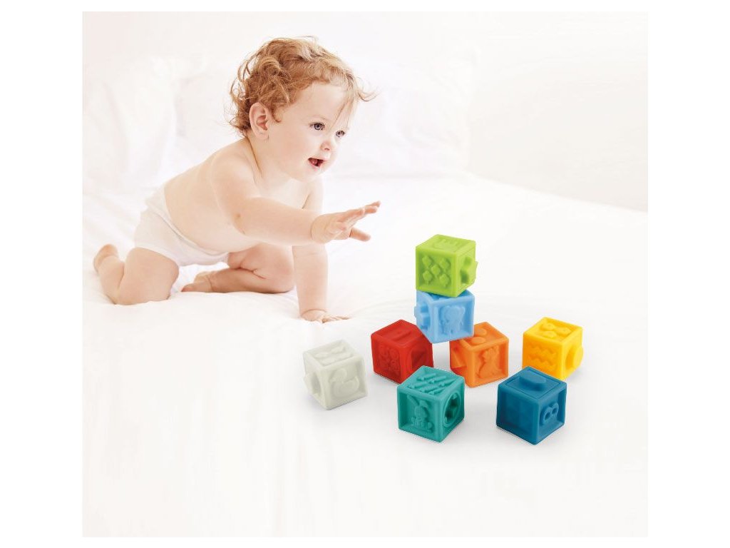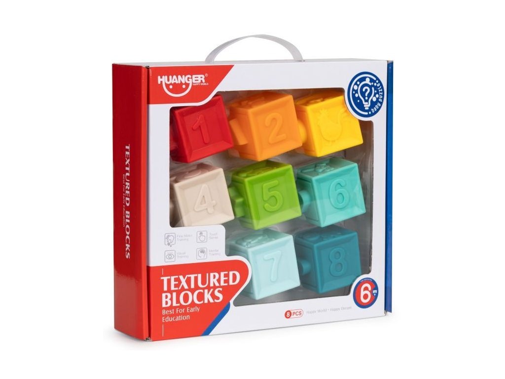 Haunger balenie mäkkých senzorických kociek je určená pre tie najmenšie deti. Stimuluje u nich predstavivosť, myseľ, zrak a sluch. Stlačením sa ozve zvuk a navyše týmto dieťa posilňuje ruky. V sade nájdete celkom 8 kociek loptičiek v rôznych farbách s vyobrazením číslic, zvieratiek a tvarov vyrobených z úplne bezpečného materiálu. Hračka je určená pre deti od 6 mesiacov.