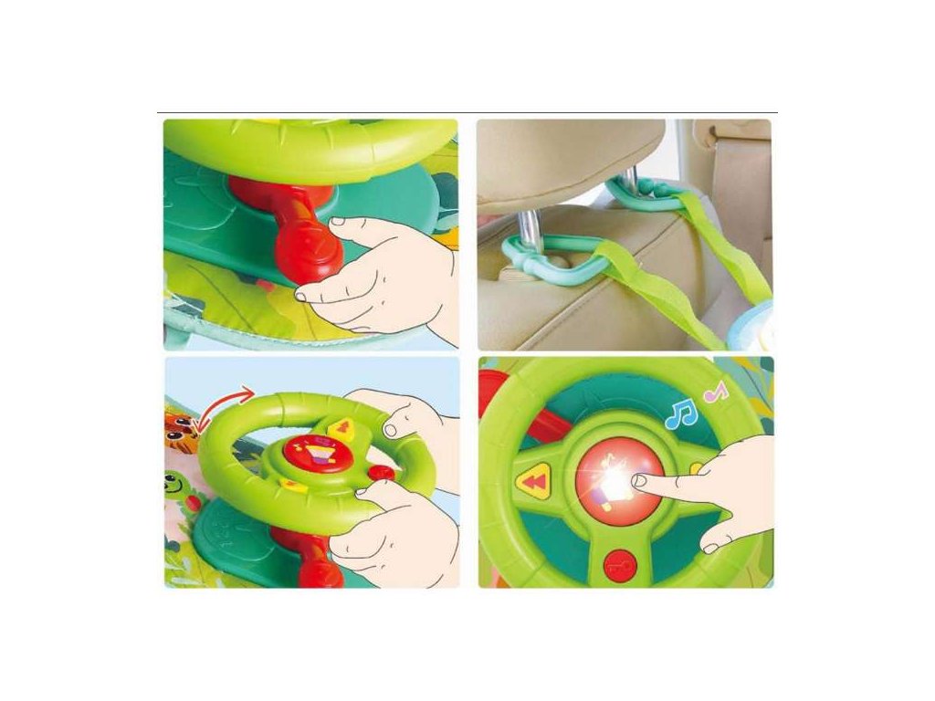 Huile Toys interaktívna zostava malého vodiča spríjemní Vášmu batoľaťu chvíle na cestách. Vaše dieťa sa bude cítiť ako skutočný vodič a bude môcť napodobňovať pohyby rodiča počas jazdy. Zvuky a svetlá stimulujú zmyslový vývoj dieťaťa. Zostava mladého vodiča vydáva zvuky ako odomykanie vozidla, štartovanie a jazdy, nechýba ani zvuk klaksónu a melódie. Tlačidlá sú podsvietené. Hračka má funkciu ovládania hlasitosti. Ľahko sa pripevňuje k opierke hlavy sedadla. Hračka je určená pre deti od 12 mesiacov .