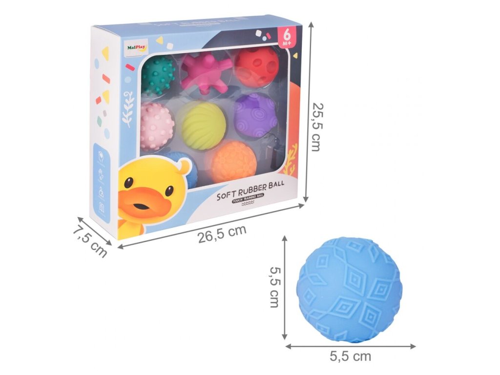 Sada mäkkých senzorických loptičiek Soft Rubber Ball je určená pre tie najmenšie deti. Stimuluje u nich predstavivosť, myseľ, zrak a sluch. Stlačením sa ozve "škrípot" a navyše týmto dieťa posilňuje ruky. V sade nájdete celkom 8 loptičiek v rôznych farbách vyrobených z úplne bezpečného materiálu. Povrch loptičiek má rôzne textúry. Hračka je určená pre deti od 6 mesiacov veku.
