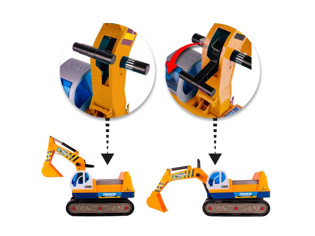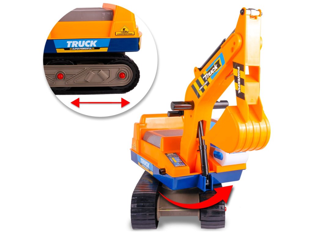 Detské odrážadlo pásový bager King Kong zaručí Vášmu dieťaťu veľa zábavy. Zábava na ňom pomáha k rozvoju manuálnych schopností dieťaťa, rozvoju sluchu, zraku aj hmatu. Predná nakladacia lyžica je pohyblivá. Vďaka pestrému žiarivému prevedeniu dieťa nikdy neomrzí a bude pre neho stále zábavné. Je vyrobené z kvalitného materiálu a je veľmi stabilné. Hrať sa s ním je absolútne bezpečné.