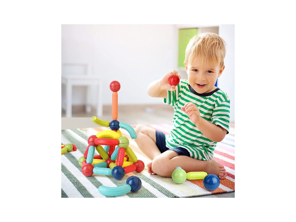 Stavebnica Magnet Sticks je ideálnou hračkou pre všetkých malých konštruktérov. Skladá sa z celkom 78 súčastí. Obsahuje guličky, rovné a zakrivené súčasti. Všetky súčasti sa veľmi ľahko prepájajú a je možné z nich vytvoriť veľké množstvo obrazcov a priestorových tvarov. Hračka je určená pre deti od 3 rokov veku.