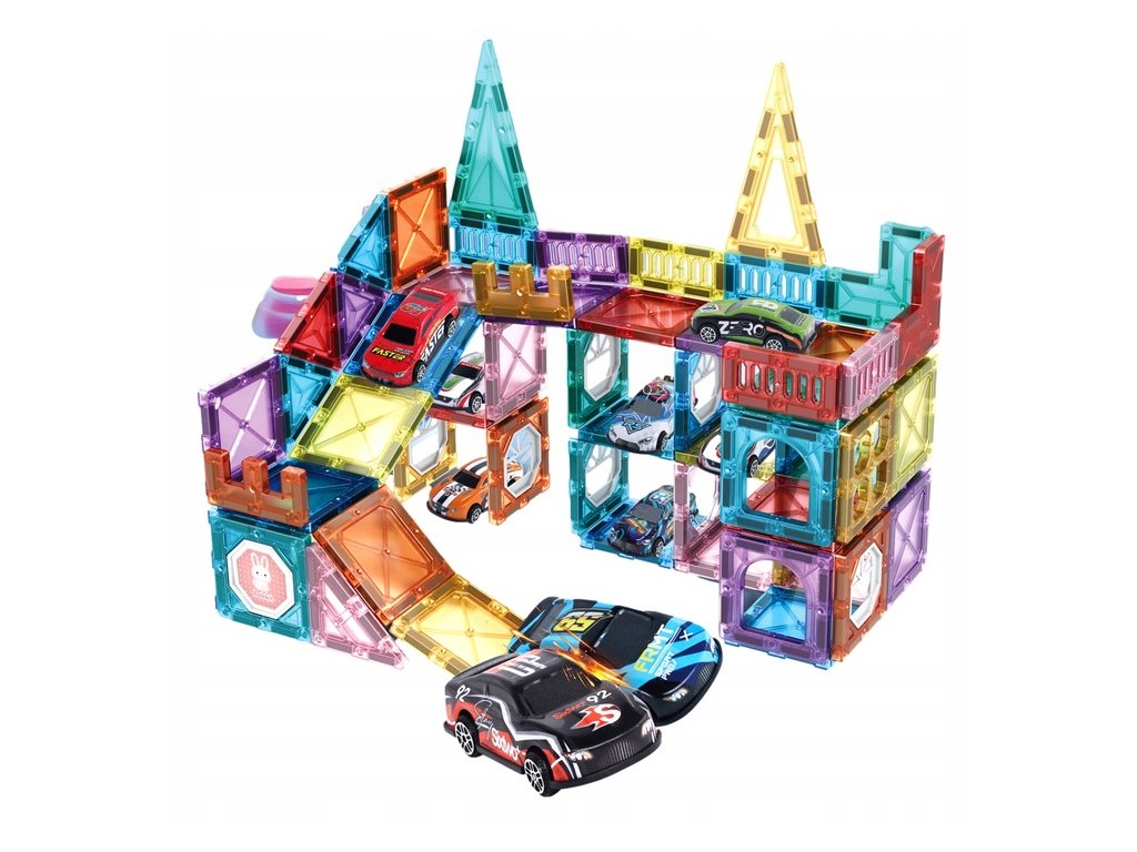 Farebná magnetická stavebnica Magnetic Blocks je ideálnou hračkou pre všetkých malých konštruktérov. Skladá sa z celkom 82 súčastí. Obsahuje konštrukčné elementy v rôznych tvaroch a tiež 12 farebných autíčok. Všetky súčasti sa veľmi ľahko prepájajú a je možné z nich vytvoriť veľké množstvo plošných a 3D tvarov. Súčasťou balenia sú aj samolepky a knižočka so vzormi. Šmykľavka kde autá môžu rýchlo skĺznuť dole poskytujú nekonečné okamihy vzrušujúce zábavy. Deti môžu vytvoriť vlastnú autodráhu, čo je nielen zábava, ale aj rozvíjanie fantázie a dizajnérskych zručností. Umiestnenie kociek a áut na dráhu je vynikajúcim cvičením pre manuálnu zručnosť a koordináciu oko-ruka. Pevná konštrukcia blokov a áut znamená, že zábava po pár jazdách nekončí, a ich odolnosť zaručuje dlhotrvajúcu radosť. Hračka je určená pre deti od 3 rokov veku.