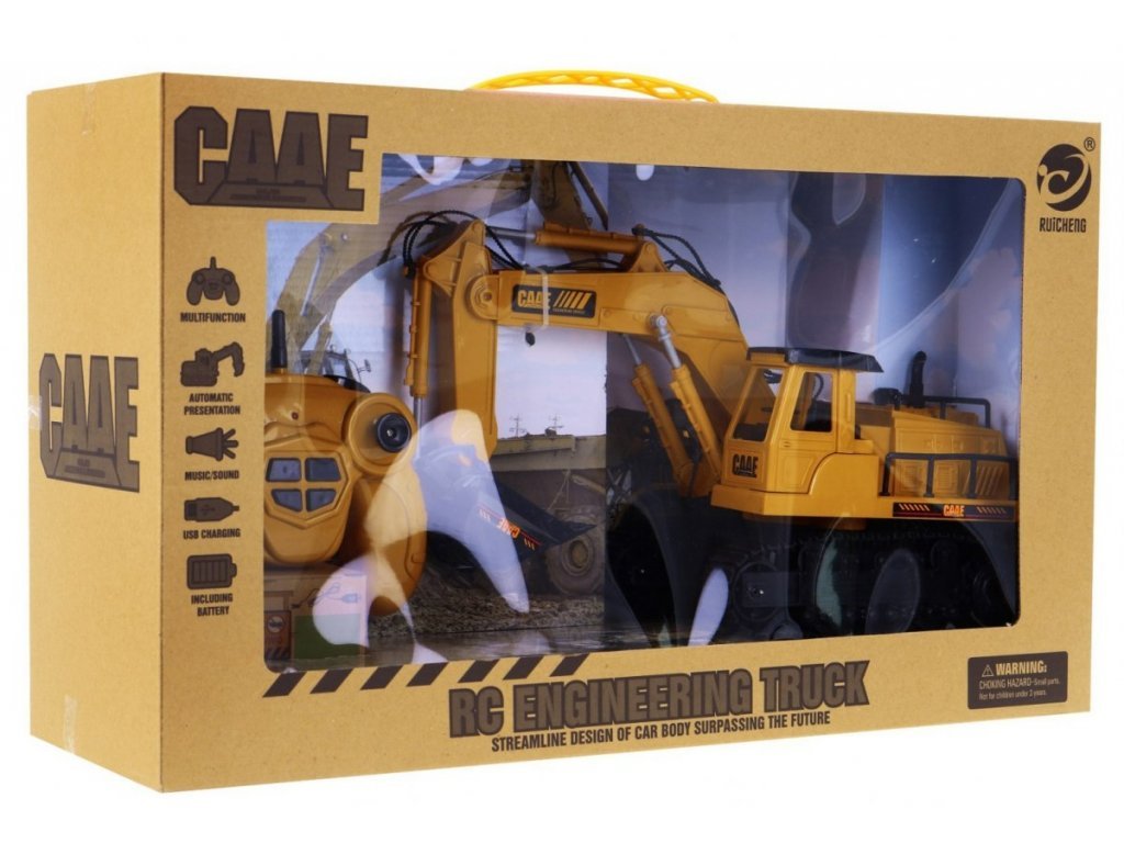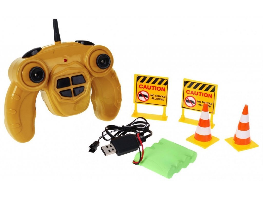 Auto na diaľkové ovládanie 2,4G umožňuje jazdu dopredu a dozadu, má otáčajúce kolesá doprava a doľava a pohyblivú otáčaciu lyžicu, pomocou ktorej je možné nakladať materiál. Pri jazde dopredu vydáva zvuky stavebného stroja, pri jazde dozadu pípa. Ovládanie je veľmi jednoduché, pomocou dvoch ovládačov sa mení smer a pomocou dvoch tlačidiel sa dvíha nakladacia lyžica. Súčasťou balenia je akumulátor a USB nabíjačka. Diaľkové ovládanie je napájané batériami, ktoré nie sú súčasťou balenia. Je vyrobený z plastu a má certifikát CE.