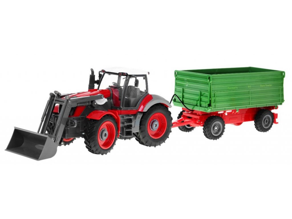 Traktor s návesom s diaľkovým ovládaním 2,4G umožňuje jazdu dopredu a dozadu, má otáčacie kolesá doprava a doľava a pripojený príves, ktorý možno sklápať. V prednej časti je umiestnená lyžica, ktorú možno zdvíhať hore a dole. Je vybavený gumovými kolesami. Ovládanie je veľmi jednoduché pomocou ovládača s kolieskom v tvare volantu s 2 páčkami. Diaľkové ovládanie aj traktor sú napájané batériami, ktoré nie sú súčasťou balenia. Traktor je vyrobený z plastu a má certifikáciu CE.