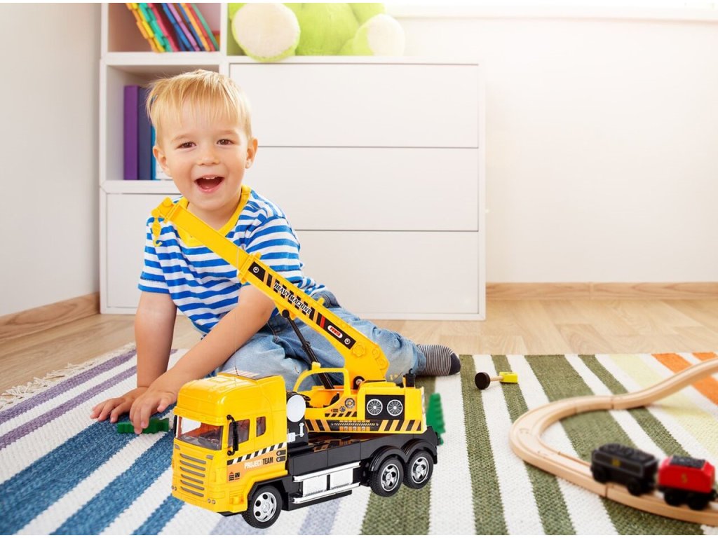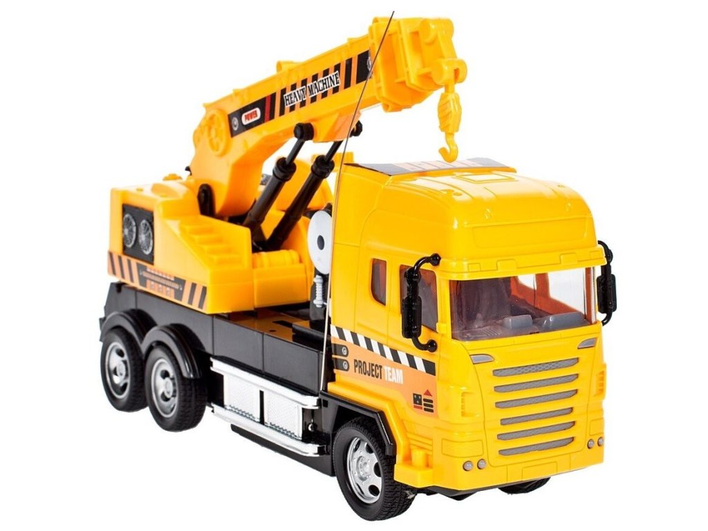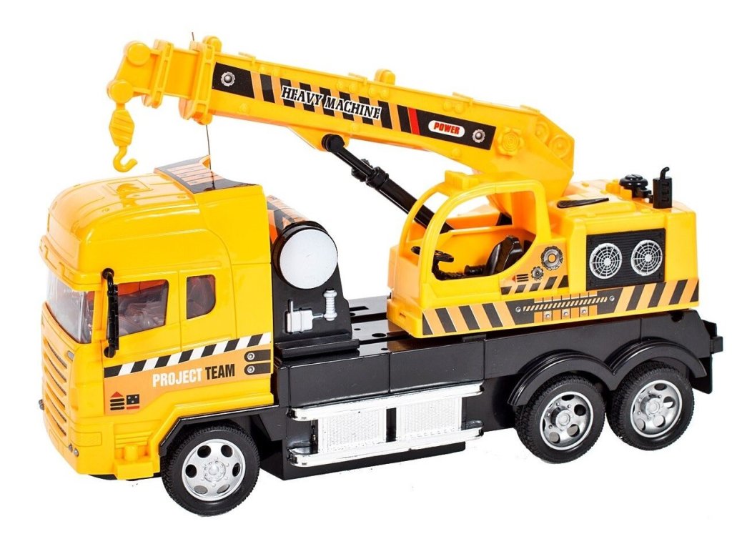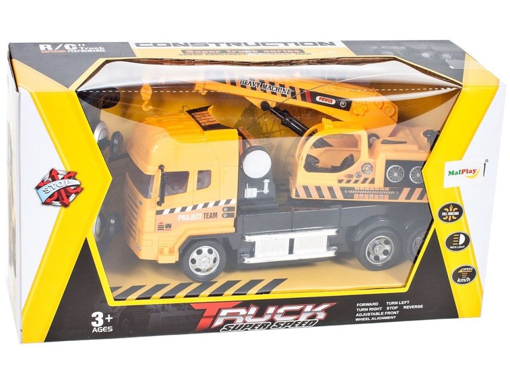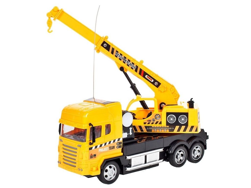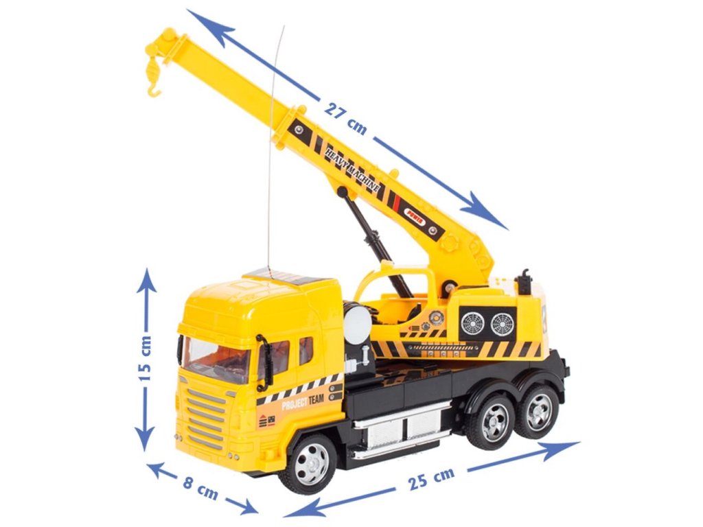 Žeriav s diaľkovým ovládaním 27MGz umožňuje jazdu dopredu a dozadu, zatáča sa doprava a doľava. Kabína žeriava je otočná o 360 ° a jeho rameno sa dá ručne vysunúť o ďalších 10 cm. Súčasťou balenia je diaľkový ovládač s jednoduchým ovládaním zmenu smeru vpred a vzad. Ovládač je napájaný batériami, ktoré nie sú súčasťou balenia. Autíčko je vyrobené z plastu a má certifikáciu CE.