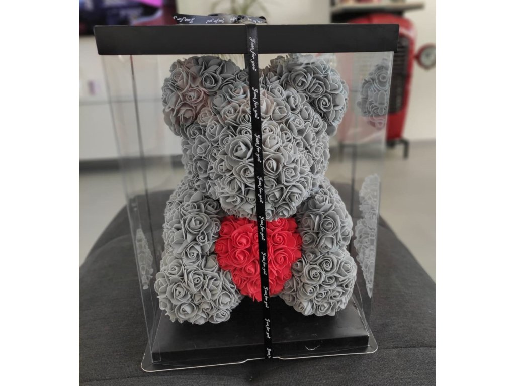 Nádherný medvedík z ruží Rose Bear s výškou 40 cm. Má jedinečný dizajn s prepracovanými detailmi, je vyrobený z 3D umelých ruží a nepotrebuje žiadnu údržbu. Je ideálnym darčekom pre každú príležitosť. Medvedík sa vyznačuje veľmi malou hmotnosťou.