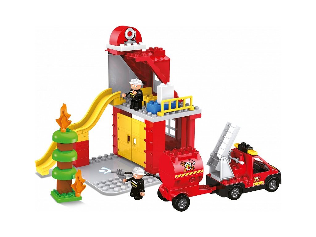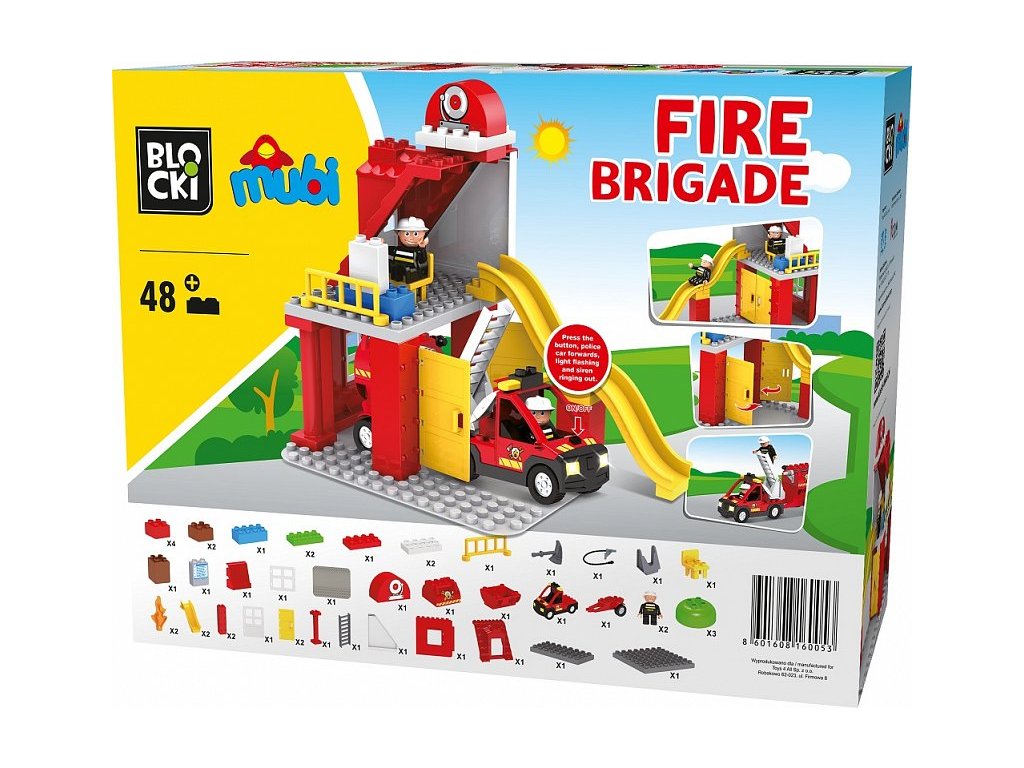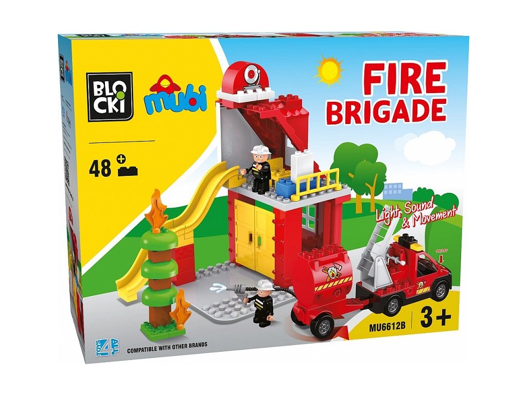 Stavebnica Blocki Mubi Hasičská stanica so svetlom a zvukmi urobí z Vášho dieťaťa pravého požiarníka. Súčasťou stavebnice je hasičská stanica s príslušenstvom a 2 figúrky hasičov. Autíčko je napájané batériami a pri pohybe vydáva zvuky a svieti. Stavebnica zaručí deťom veľa hodín zábavy, pomôže im rozvíjať kreativitu, manuálne zručnosti a zlepšuje logické myslenie. Stavebnica je kompatibilná so stavebnicami ostatných svetových značiek ako je Lego Duplo a ďalšie. Všetky dieliky stavebnice sa veľmi ľahko prepájajú a sú vyrobené z kvalitného plastu. Táto stavebnica je určená pre deti od 3 rokov.