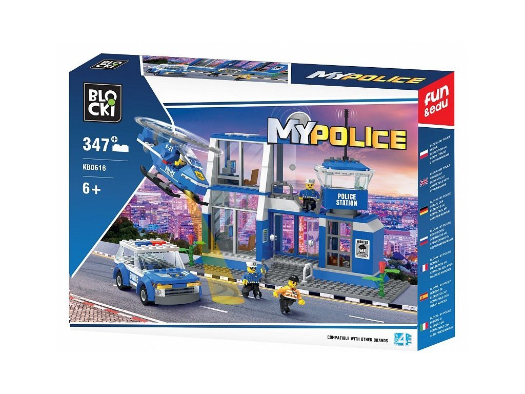 Stavebnica Blocki pPlicajná diaľničná stanica umožní Vášmu dieťaťu stať sa pravými členmi policajného zboru. Kompletne vybavená policajná stanica sa skladá z 347 dielikov, obsahuje dvojposchodovú budovu policajnej stanice, figúrky policajtov, policajné auto, vrtuľník a samolepky. Stavebnica zaručí deťom veľa hodín zábavy, pomôže im rozvíjať kreativitu, manuálne zručnosti a zlepšuje logické myslenie. Stavebnica je kompatibilná so stavebnicami ostatných svetových značiek. Všetky dieliky stavebnice sa veľmi ľahko prepájajú a sú vyrobené z kvalitného plastu.