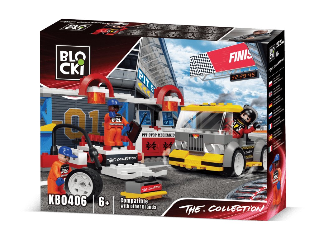 Stavebnica Blocki TheCollection závodné depo Pit Stop urobí z Vášho dieťaťa pravého automobilového pretekára alebo mechanika. Sada obsahuje závodný ťahač, zariadenie na výmenu pneumatík, 2 figúrky mechanikov a figúrku pretekára. Stavebnica zaručí deťom mnoho hodín zábavy, pomôže im rozvíjať kreativitu, manuálne zručnosti a zlepšuje logické myslenie. Stavebnica je kompatibilná so stavebnicami ostatných svetových značiek ako je Lego, Sluban a ďalšie. Všetky dieliky stavebnice sa veľmi ľahko prepájajú a sú vyrobené z kvalitného plastu.