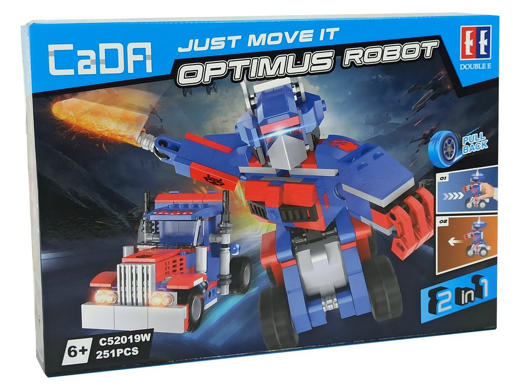 Detská stavebnica CaDA 2v1 je ideálnou hračkou pre všetky malé konštruktéry. Súčasťou je celkom 251 dielikov, z ktorých sa zloží kompletný funkčný ťahač alebo robot. Auto má navyše pohon s dojazdom až 10 metrov. Jedná sa skvelú zábavu pre chlapcov a môžete nám veriť, že k hre s týmto sa radi zapoja aj oteckovia. Hračka je určená pre deti od 6 rokov veku.