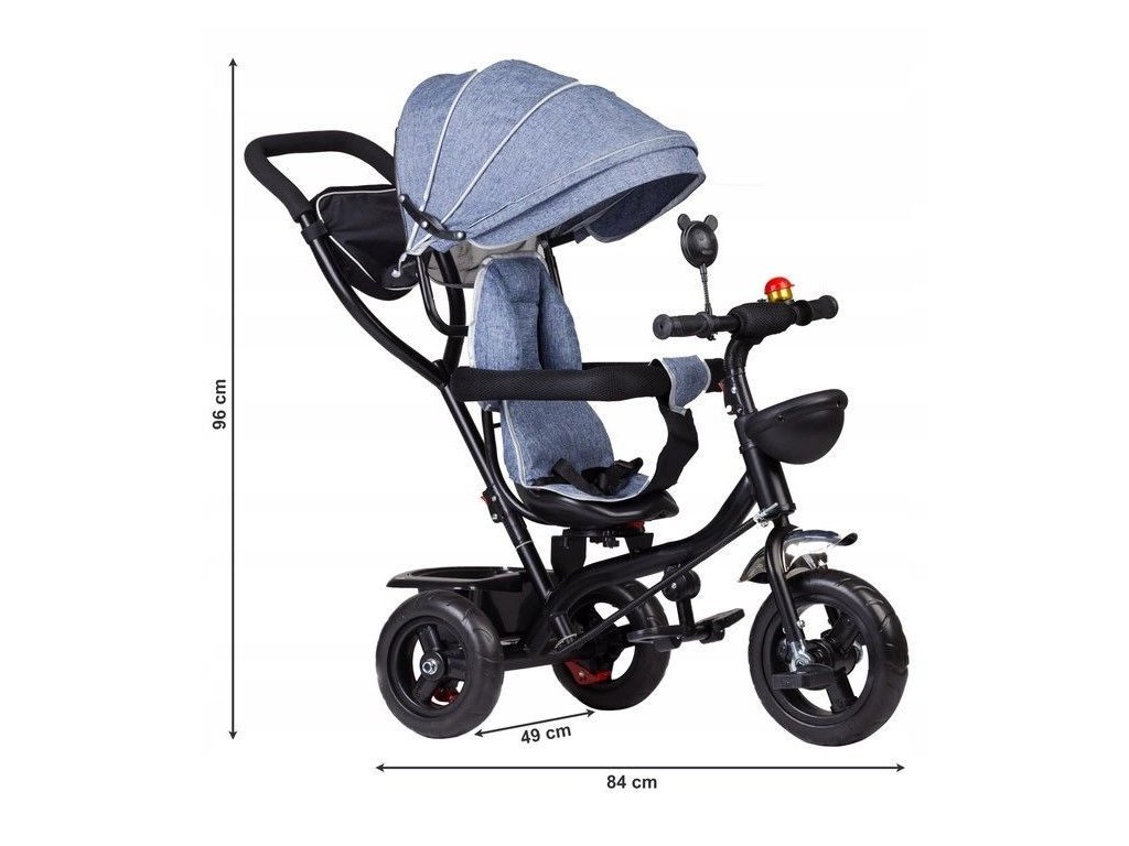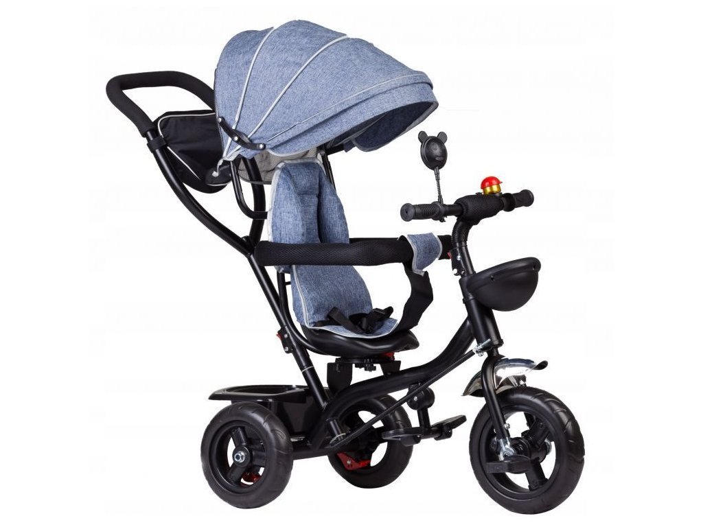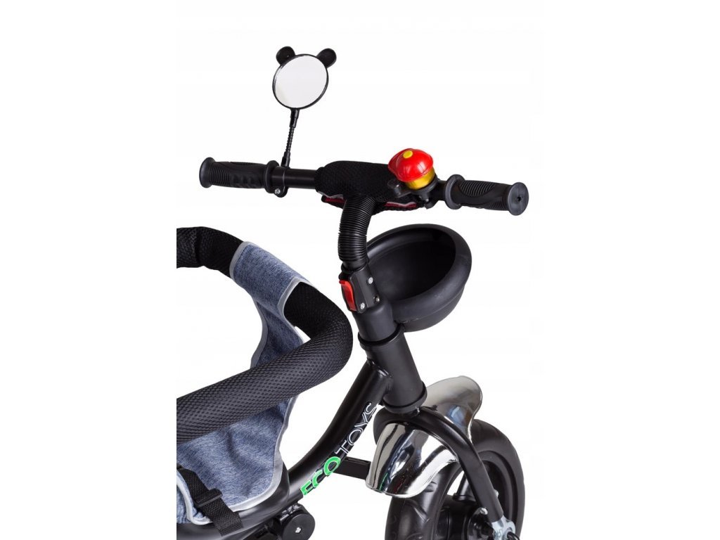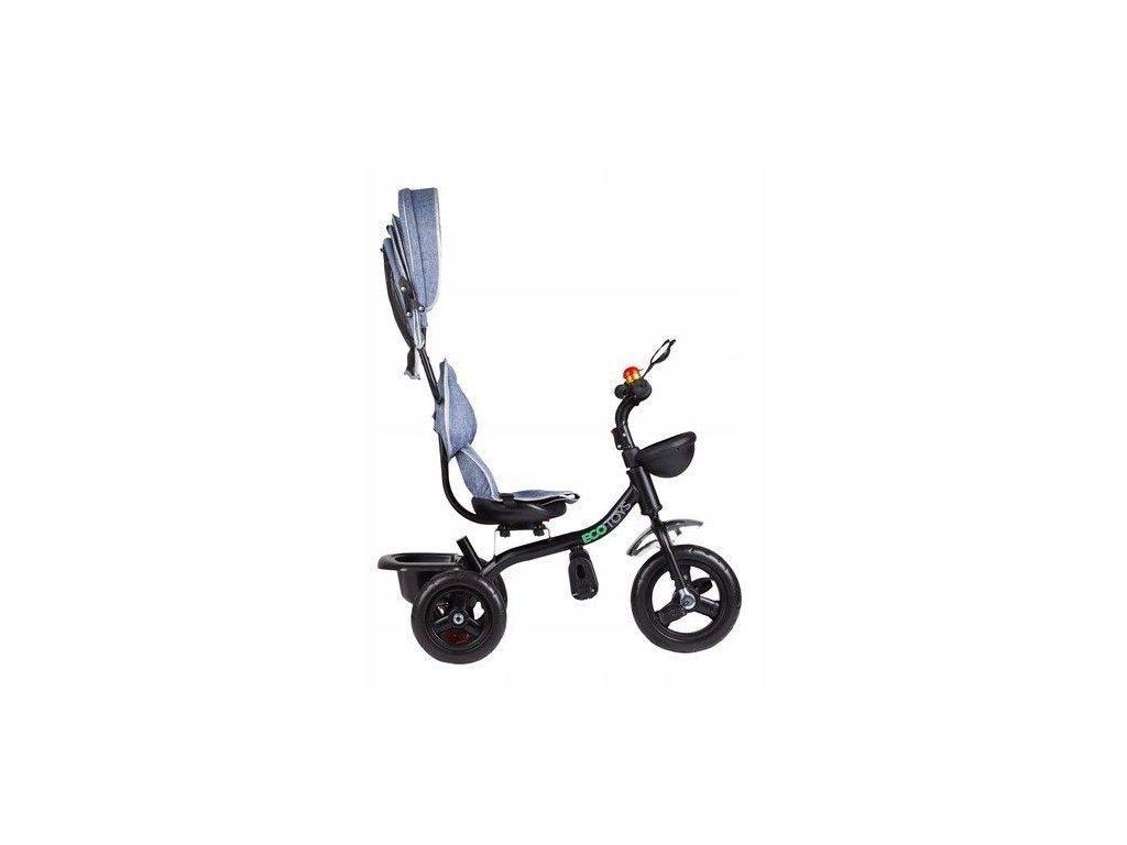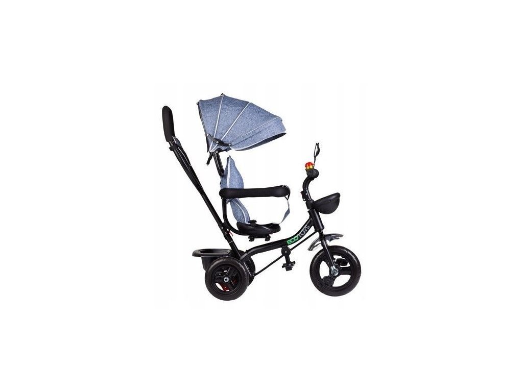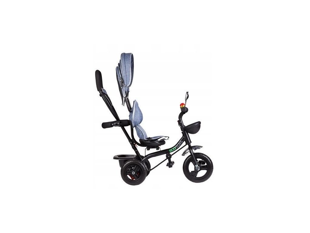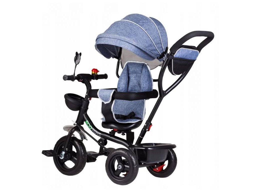 Detská trojkolka Ecotoys 2v1 s otočným sedadlom. Je určená pre deti od 1 do 5 rokov. Vybavená praktickou odnímateľnou strieškou proti slnku a dažďu. V zadnej časti je umiestnený veľký kôš na hračky, v prednej časti menší košík. Trojkolka má pevnú oceľovú konštrukciu a odolné gumové kolesá usadené v pevných plastových ráfikoch. Držadlo a bezpečnostný pás zabraňujú vypadnutiu dieťaťa. Na riaditkách je zvonček a veselé zrkadlo. Pre väčšiu bezpečnosť môžu trojkolku riadiť aj rodičia a zadné kolesá majú 2 nezávislé brzdy. Sedadlo možno otočiť o 360 ° a to v smere jazdy alebo čelom k rodičovi a navyše uľahčí nastupovanie najmladším deťom.