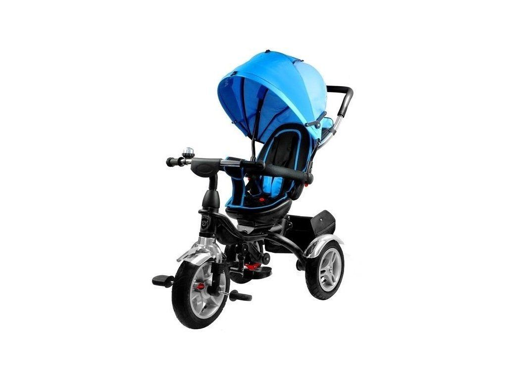 Detská trojkolka 2v1 Pro500 s nafukovacími kolesami. Možno ju využiť presne podľa potreby vývoja dieťaťa a podľa jeho veku. Primárne určená pre deti od 3 do 5 rokov ale využitie nájde aj u menších deti. Je vybavená praktickou strieškou proti slnku vybavenú UV filtrom. V zadnej časti je umiestnený veľký kôš na hračky, medzi vodiacou tyčou je taška na drobnosti. Trojkolka má pevnú oceľovú konštrukciu a robustné nafukovacie kolesá. Pre menšie deti slúžia stupačky, ktoré možno ľahko demontovať. Čalúnené madlo zabraňuje vypadnutiu dieťaťa. Na riaditkách je zvonček. Pomocou vodiacej tyče môžu trojkolku riadiť aj rodičia. Trojkolku môžete úplne odstrojiť, demontovať striešku, vodiacu tyč, ochrannú bariéru a stupadlá. Dieťa tak môže jazdiť úplne samé.
