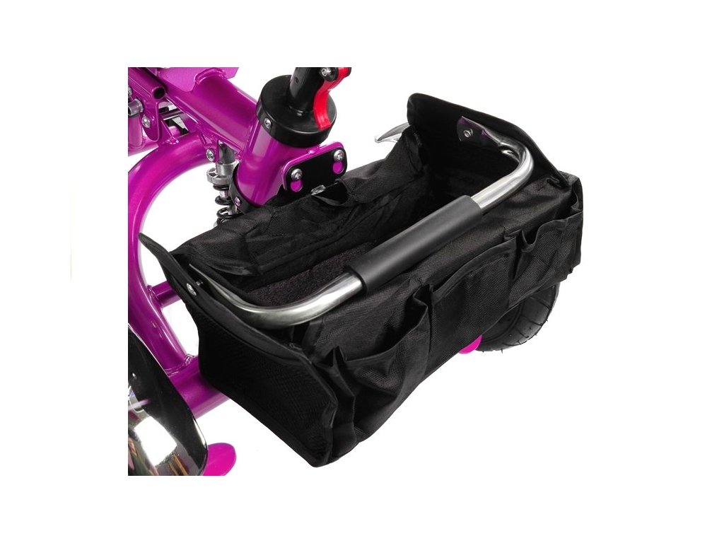 Detská trojkolka 2v1 PRO600 s nafukovacími kolesami. Primárne určená pre deti od 3 do 5 rokov, ale využitie nájde aj pre menšie deti. Vybavená praktickou strieškou proti slnku. V zadnej časti je umiestnený veľký kôš na hračky, medzi vodiacou tyčou potom taška na drobnosti. Trojkolka má pevnú oceľovú konštrukciu a robustné nafukovacie kolesá. Pre menšie deti slúžia sklopné stupadlá. Čalunené madlo zabraňuje vypadnutiu dieťaťa. Na riaditkách je zvonček. Pomocou vodiacej tyče môžu trojkolku riadiť aj rodičia. Trojkolku môžete úplne odstrojiť, demontovať striešku, vodiacu tyč, ochrannú bariéru a stupienky. Dieťa tak môže jazdiť úplne samo.